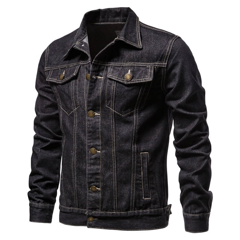 แจ็กเก็ตยีนส์สีน้ำเงินวินเทจสำหรับผู้ชายแจ็กเก็ตเดนิมแบบเรียบสำหรับฤดูหนาวออกแบบได้ตามที่ต้องการ