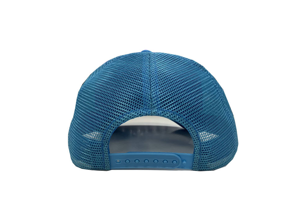 หมวกแก๊ปทรงทรัคเกอร์สีน้ำเงินวินเทจ แต่งโลโก้ปักไหมพรม 3 มิติ ตาข่ายโปร่ง ทรงสูง 5 ชิ้น แบบ Snapback สำหรับทุกเพศ สไตล์สตรีทแวร์