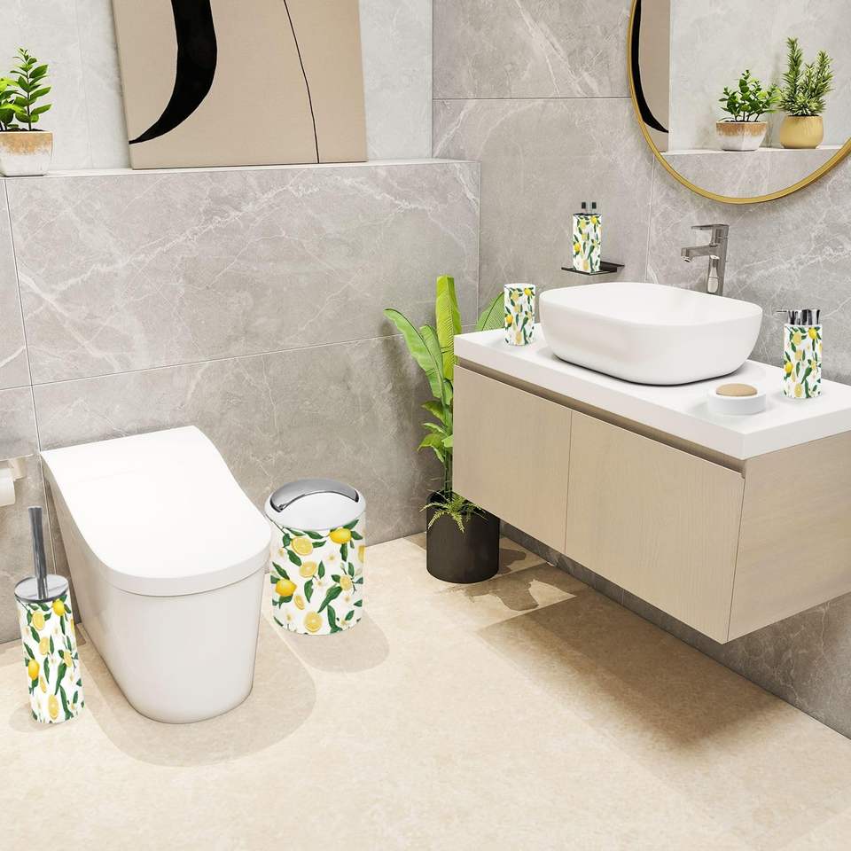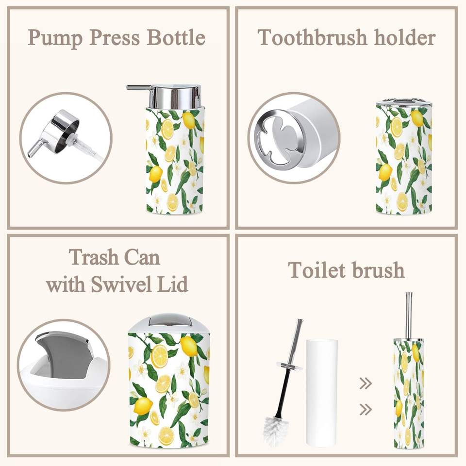 Hortensia ชุดอุปกรณ์ห้องน้ำ6ชิ้นลายดอกไม้ไร้รอยต่อลายดอกไม้สีฟ้าวินเทจขัดเงาอุปกรณ์อาบน้ำเพื่อให้ดูมีสไตล์
