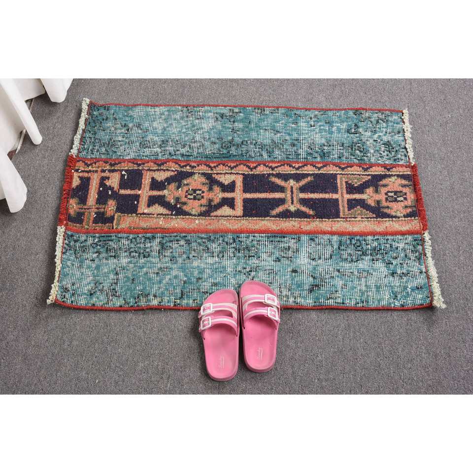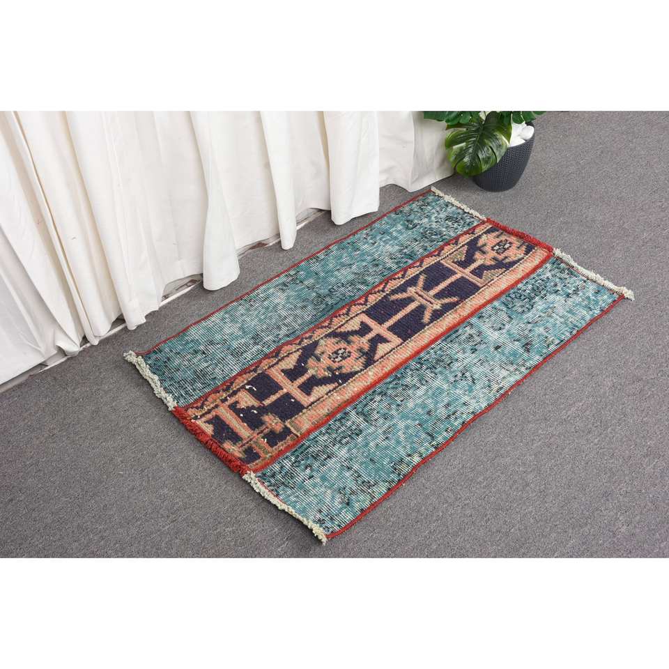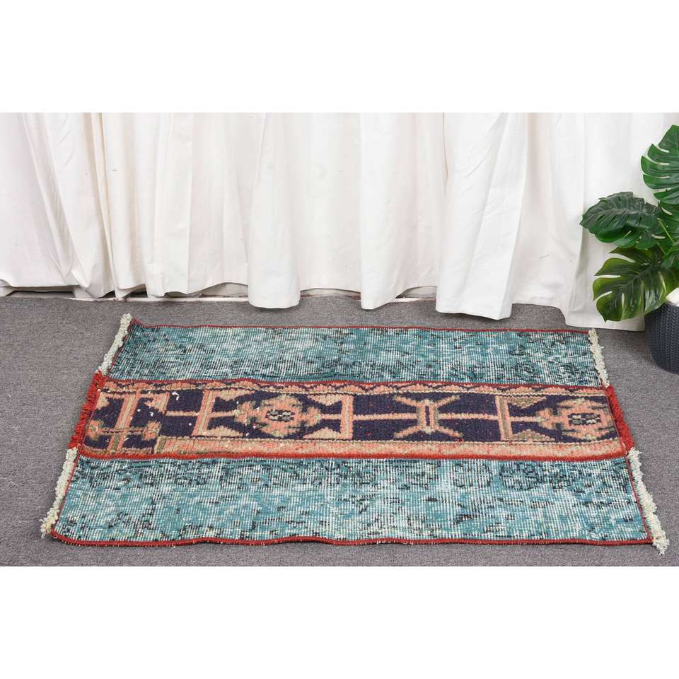 พรมขนแกะตุรกีสีน้ำเงินและแดงวินเทจขนาด1.9x2.9ฟุตถักทอแบบเรียบสำหรับตกแต่งห้องนั่งเล่น