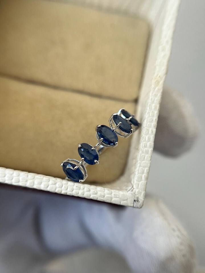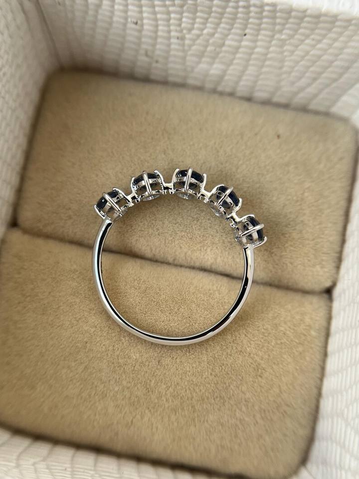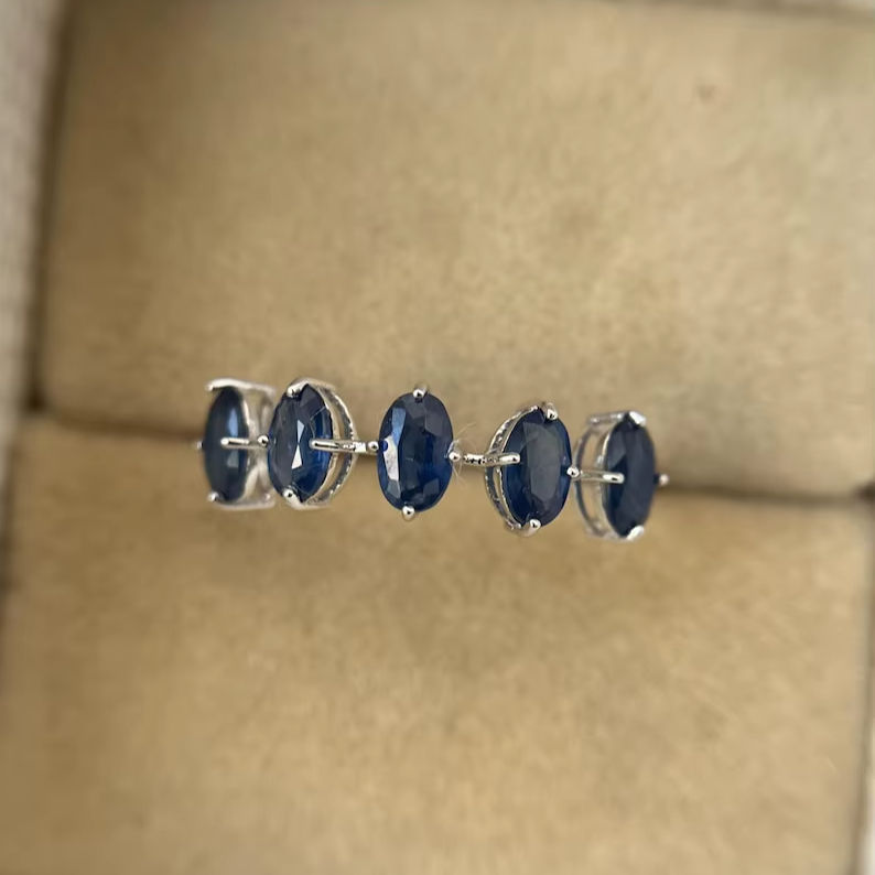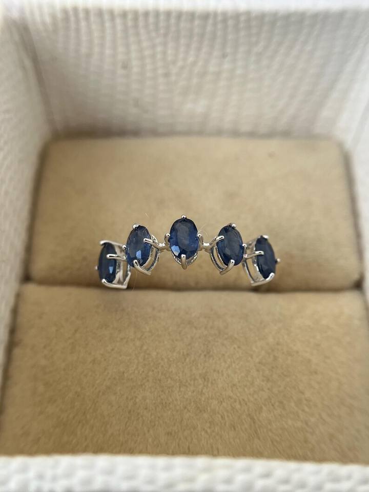 แหวนไพลินสีน้ำเงินวินเทจห้าเม็ด แหวนหมั้น แหวนแต่งงานสำหรับผู้หญิง เครื่องประดับ