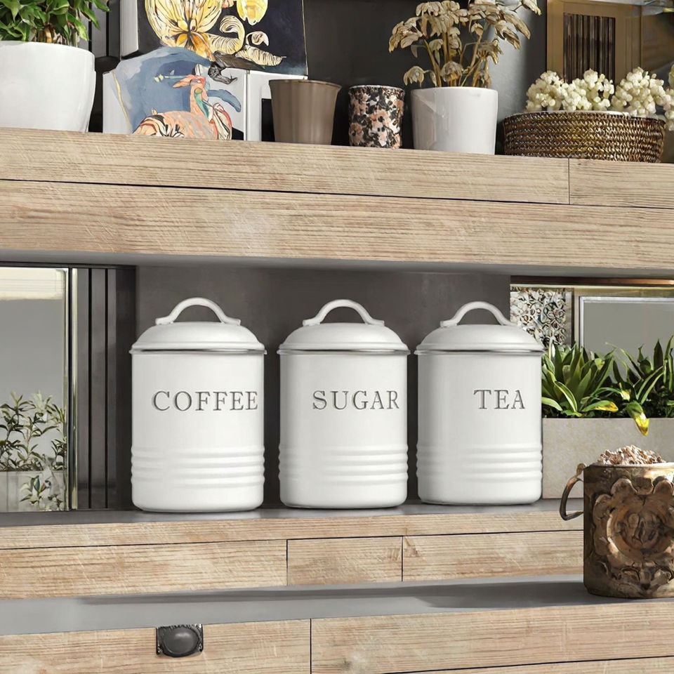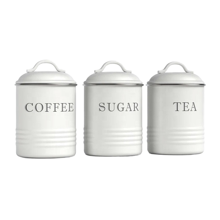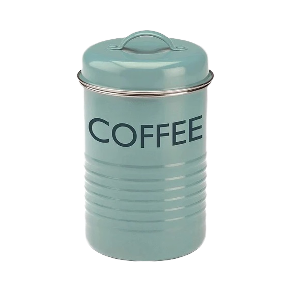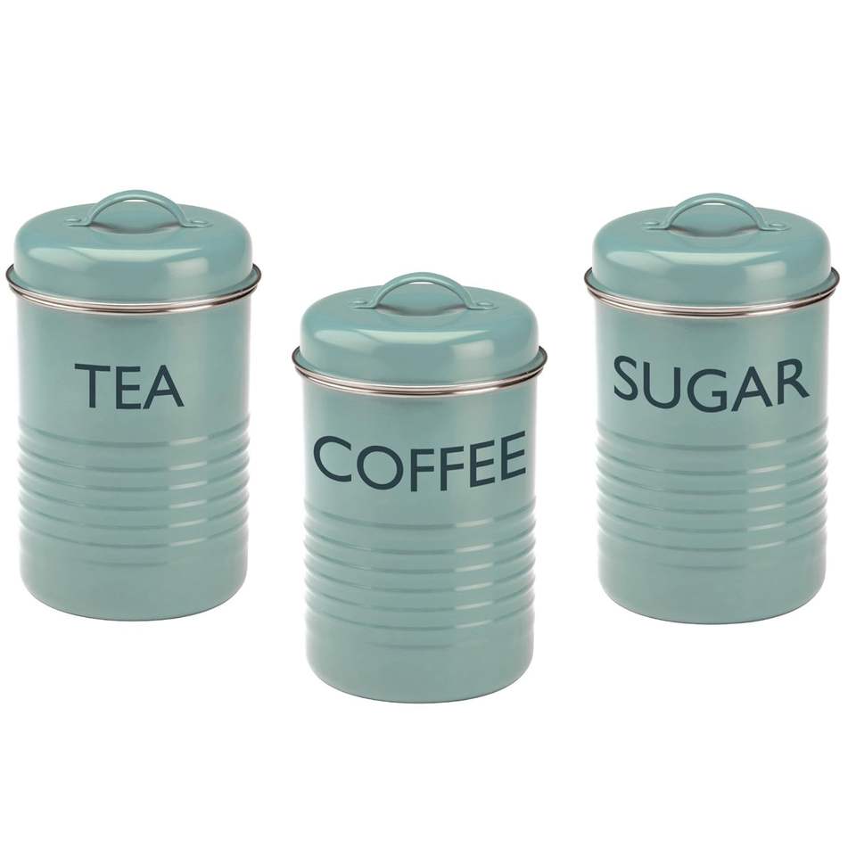 กระปุกเก็บชา กาแฟ และน้ำตาลสีน้ำเงินวินเทจ ดีไซน์หรูหราสำหรับวางบนเคาน์เตอร์ครัว พร้อมฝาปิด