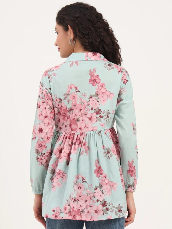 เดรสผ้าฝ้ายลายดอกไม้สีน้ำเงินวินเทจ คอเหลี่ยม ผ้าฝ้าย 100% แห้งเร็ว เป็นมิตรกับสิ่งแวดล้อม เหมาะสำหรับใส่ลำลองในฤดูร้อนและชายหาด