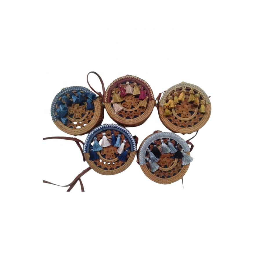 Boho Bali แบบวินเทจทำจากฟางหวายทรงกลมกระเป๋าชายหาดสำหรับงานปาร์ตี้ชายหาดของที่ระลึกงานแต่งงานแบบลำลองสำหรับทุกเพศ