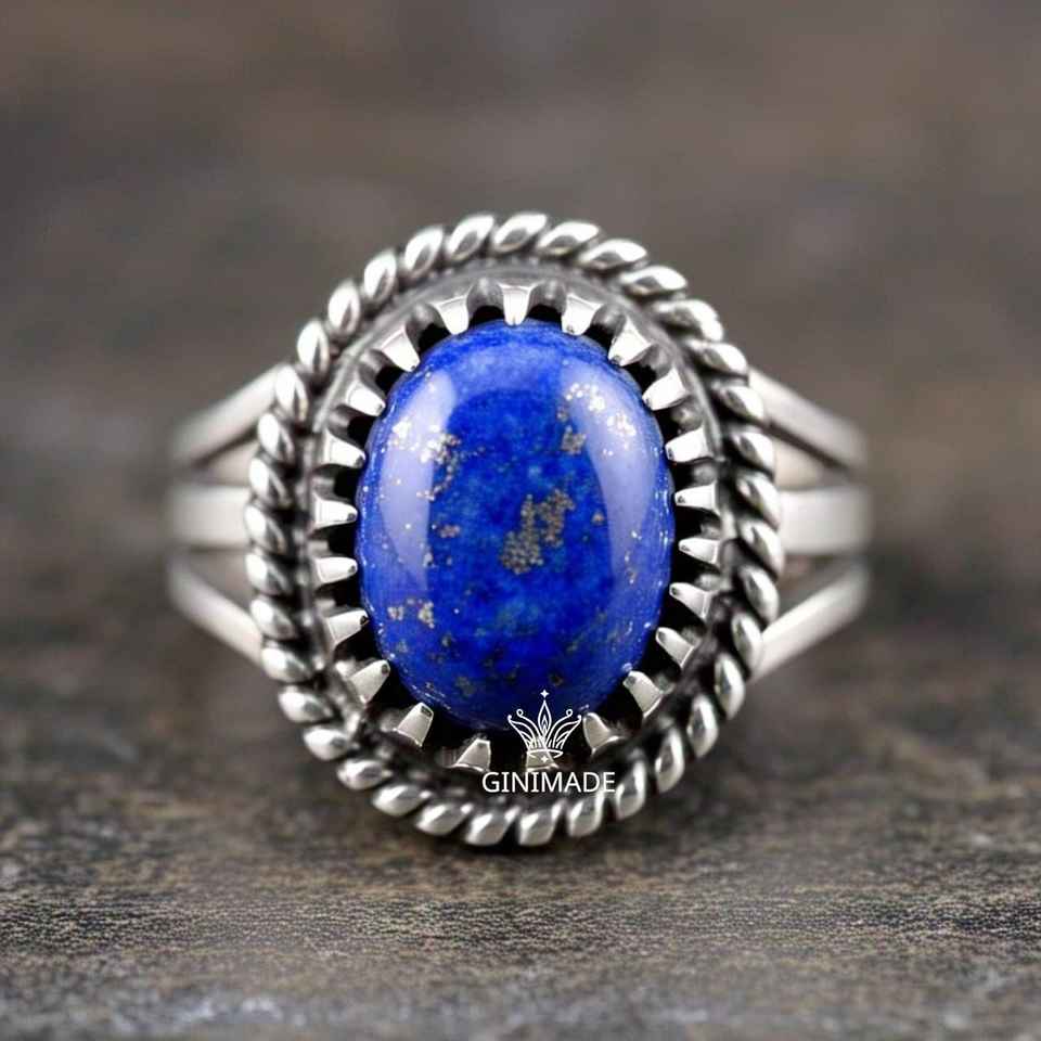 แหวนเงินสเตอร์ลิงทำด้วยมือสไตล์วินเทจสไตล์โบฮีเมียนสำหรับผู้หญิงเครื่องประดับแฟชั่นพลอยลาซิลแลปสีฟ้า