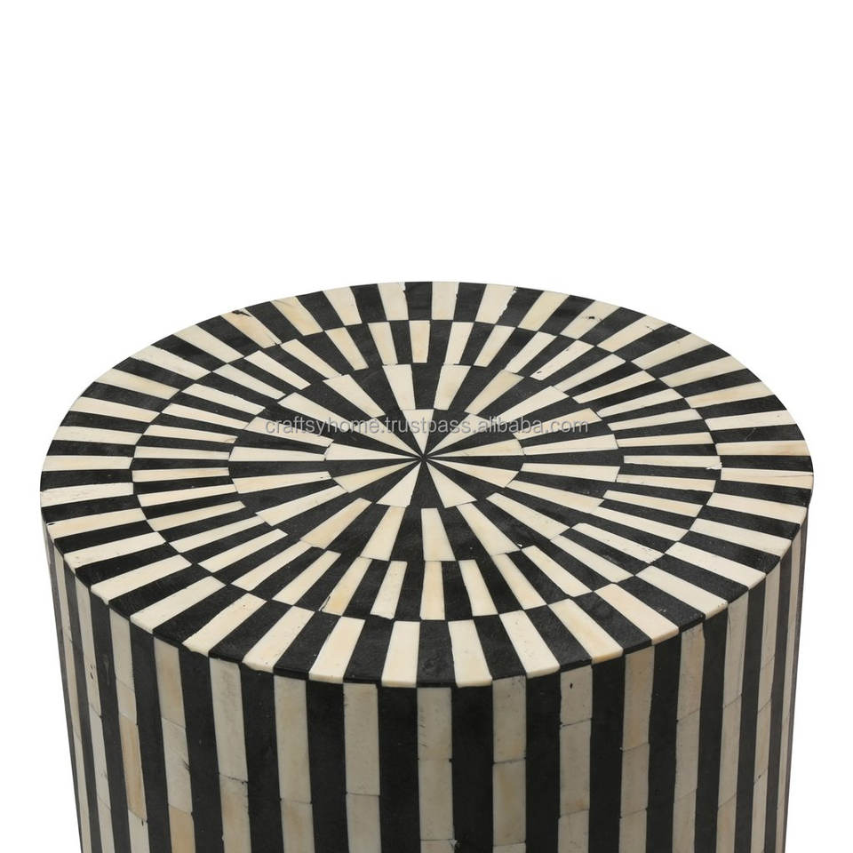 เก้าอี้สตูลทรงกลมฝังกระดูกแนววินเทจ,เก้าอี้ทรงกลมแบบฝังกระดูกทรงเขียนด้วยมือผลิตจากโชธปุระสำหรับห้องนั่งเล่น
