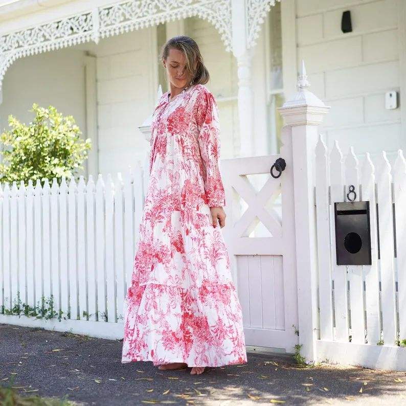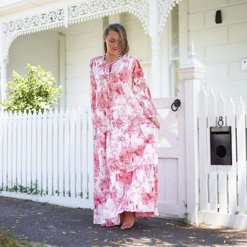 เดรสยาวผ้าฝ้าย100% วินเทจเดรสฤดูร้อนพิมพ์ลายดอกไม้หรูหราผ้าคอตตอนเนื้อนุ่มระบายอากาศและน้ำหนักเบา