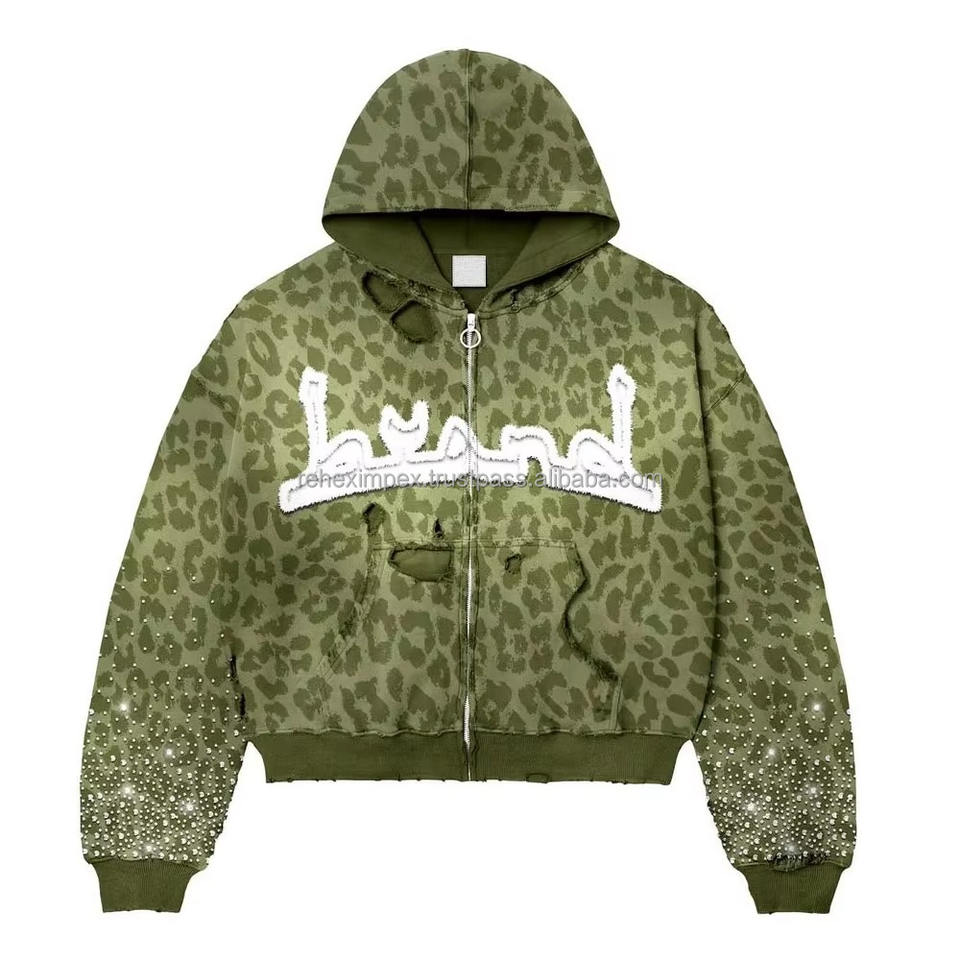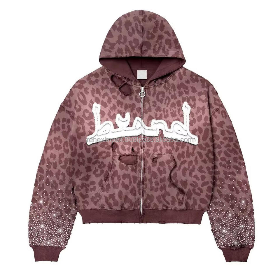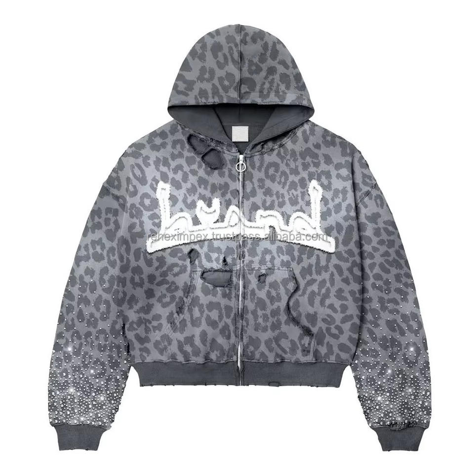 เสื้อฮู้ดดี้ทรงบ็อกซี่สไตล์วินเทจ ปักโลโก้ตามสั่ง ดีไซน์ซีดจางแบบทำเก่า แต่งด้วยคริสตัล 100% ผ้าฝ้าย ปักลาย พิมพ์ดิจิทัล สำหรับฤดูหนาว