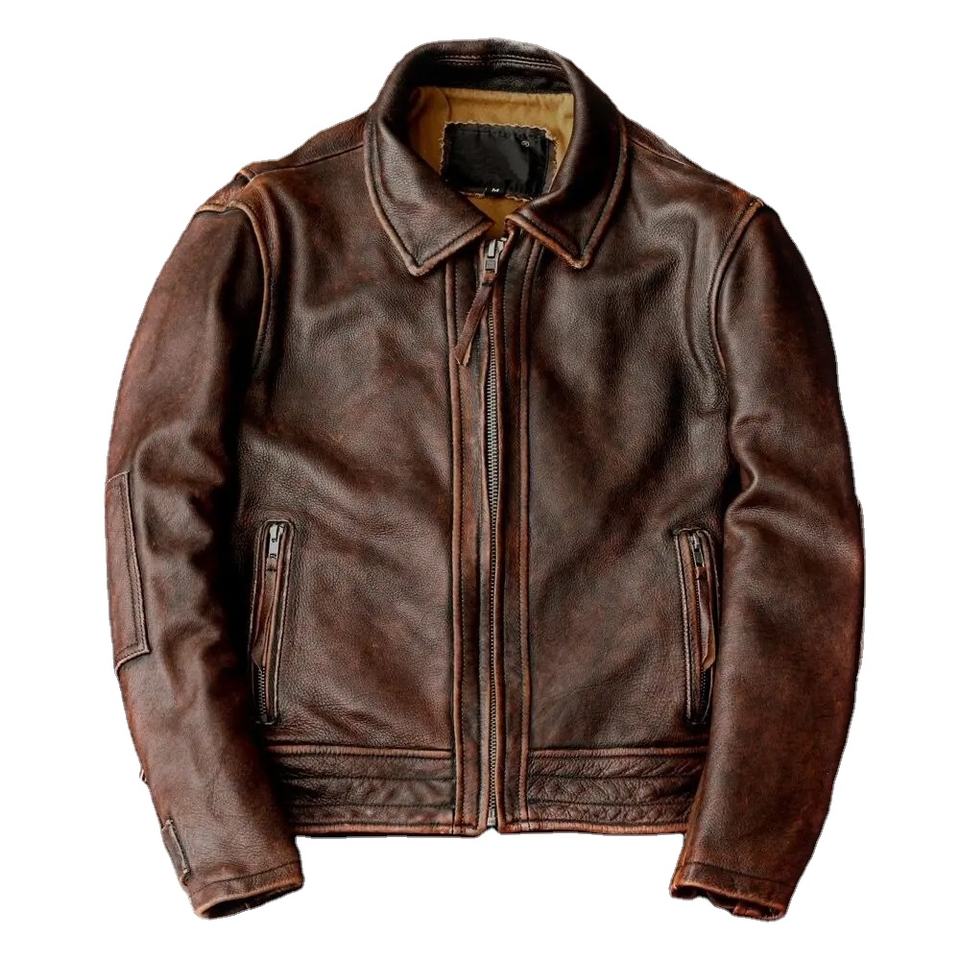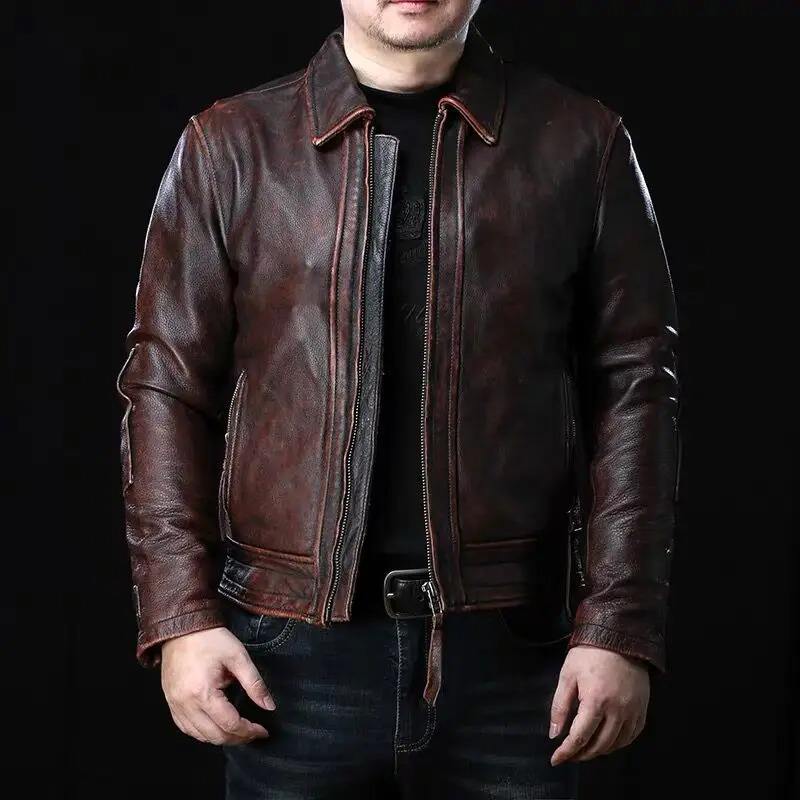 แจ็กเก็ตหนังแกะแบรนด์วินเทจเสื้อโค้ทหนังแท้ลำลองคลาสสิกพร้อมผ้าแคนวาสกันน้ำใส่มอเตอร์