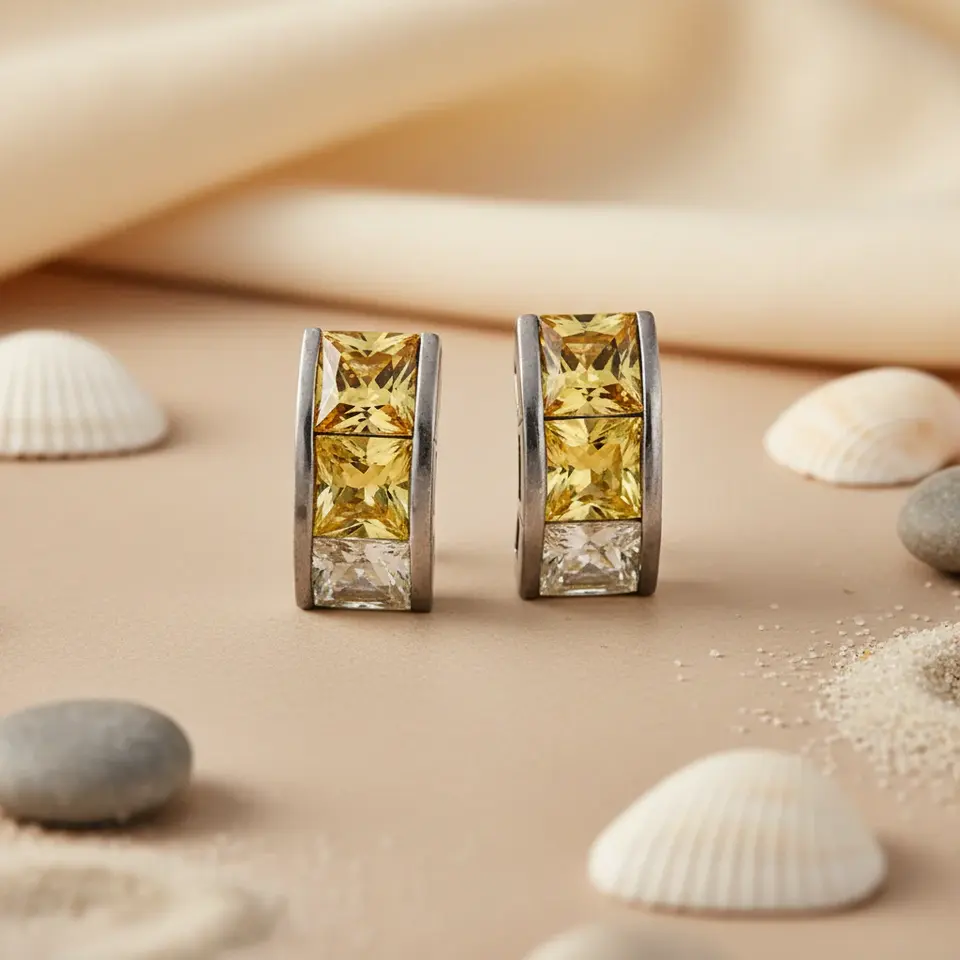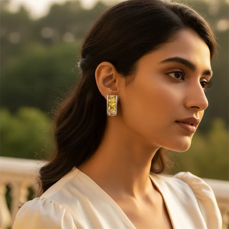ต่างหูห่วงทองเหลืองและทองแดงวินเทจ ประดับพลอยสีเหลืองและเพชรคิวบิกเซอร์โคเนีย สำหรับงานปาร์ตี้สุดอินเทรนด์ของผู้หญิง