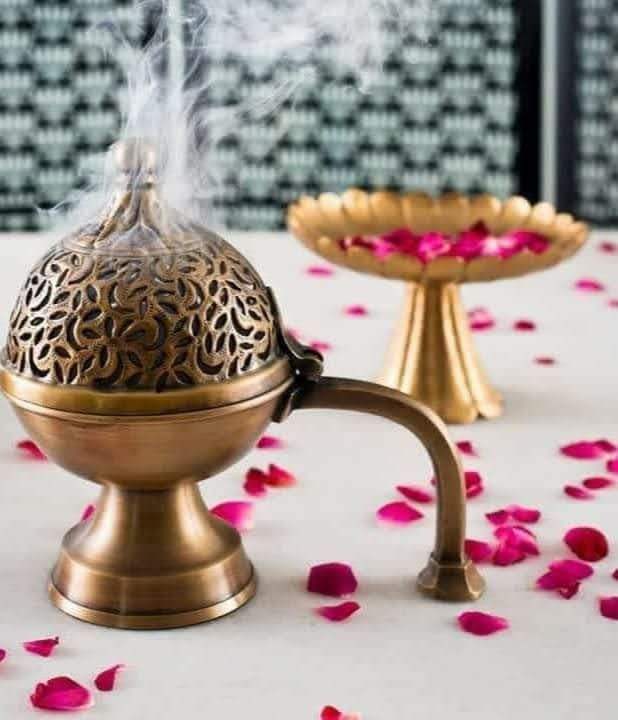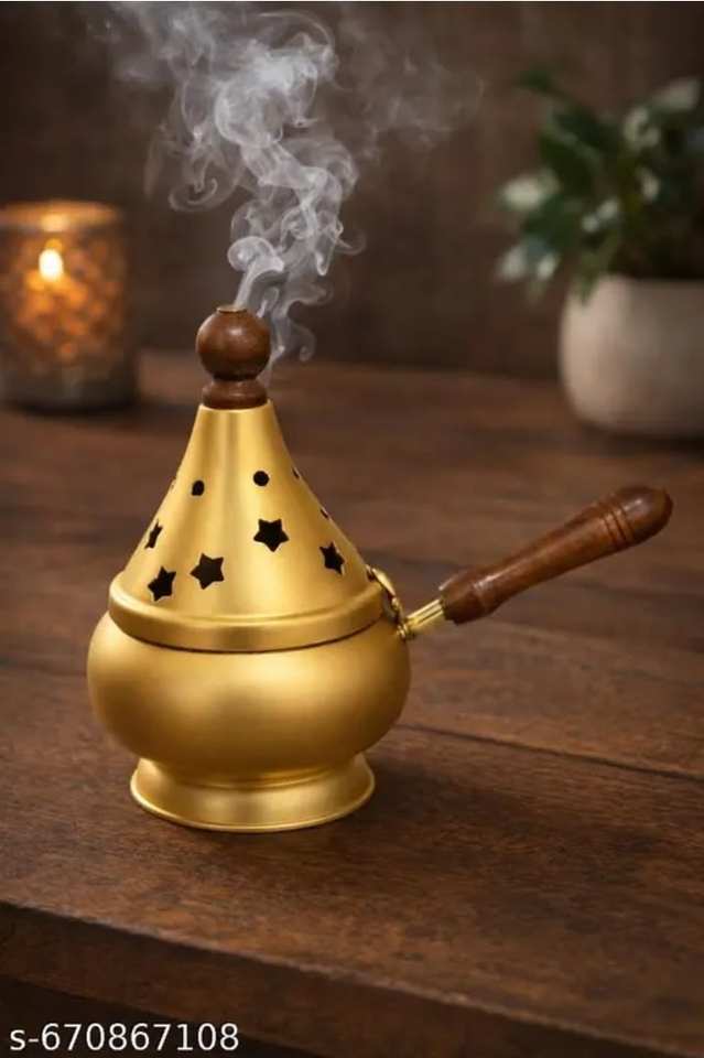 กระถางธูปทองเหลืองโบราณพร้อมที่จับตกแต่งโลหะ Dani ที่วางควันสำหรับวัดของตกแต่งบ้าน