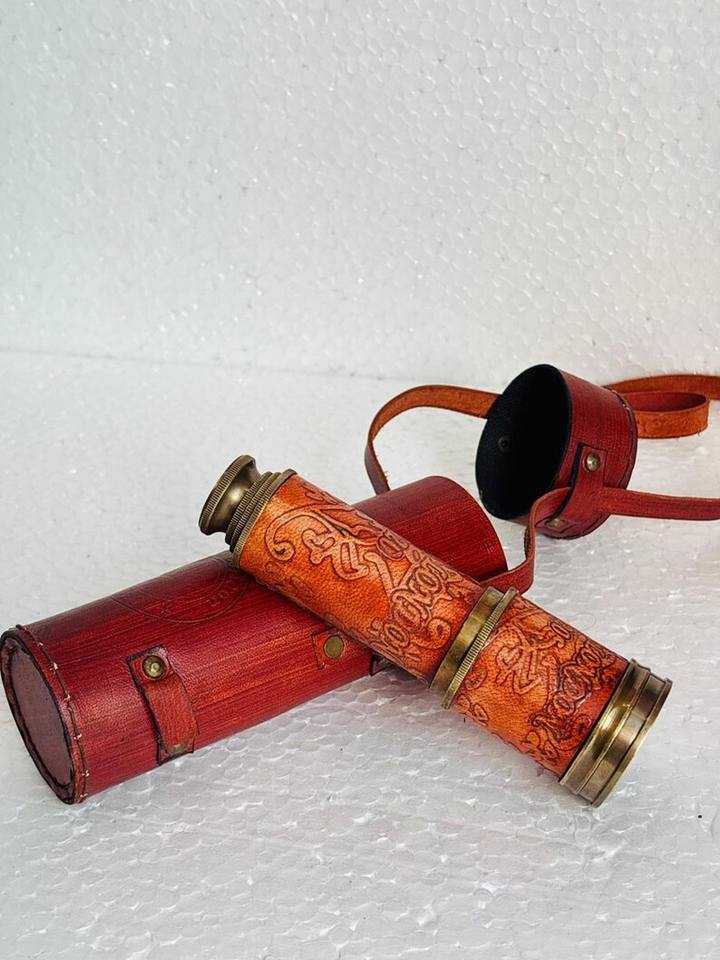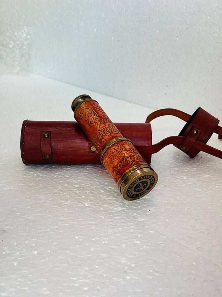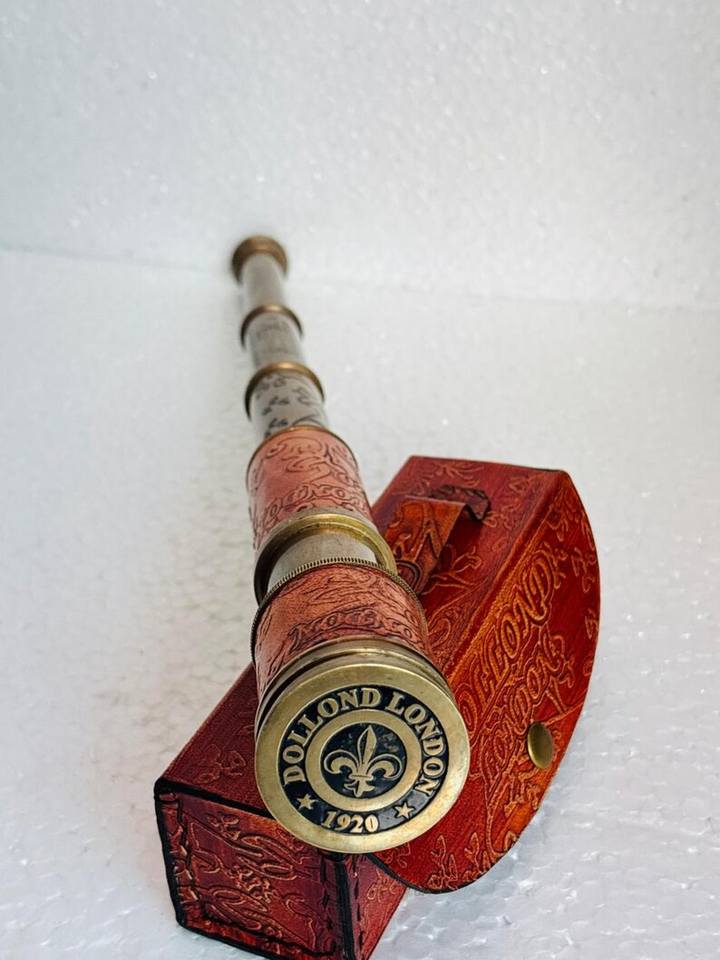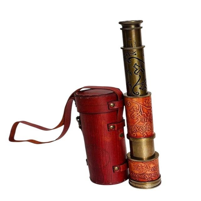กล้องโทรทรรศน์ทองเหลือง Spyglass วินเทจพร้อมเคสหนังงานฝีมือสไตล์โบราณดอลตันสโคปสตีมพังค์ของขวัญสำหรับสะสม