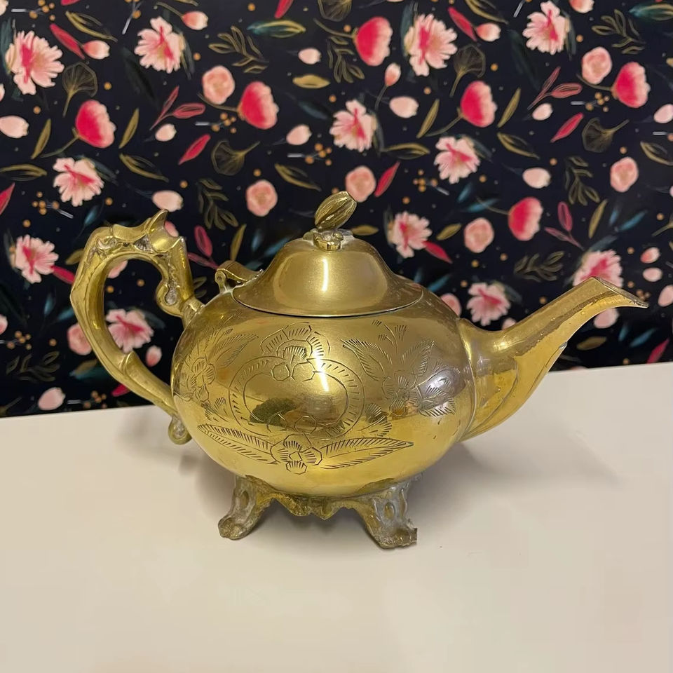 กาน้ำชาทองเหลืองโบราณ งานแฮนด์เมด สำหรับนักสะสมและพิธีกรรมทางวัฒนธรรม ราคาส่งออก