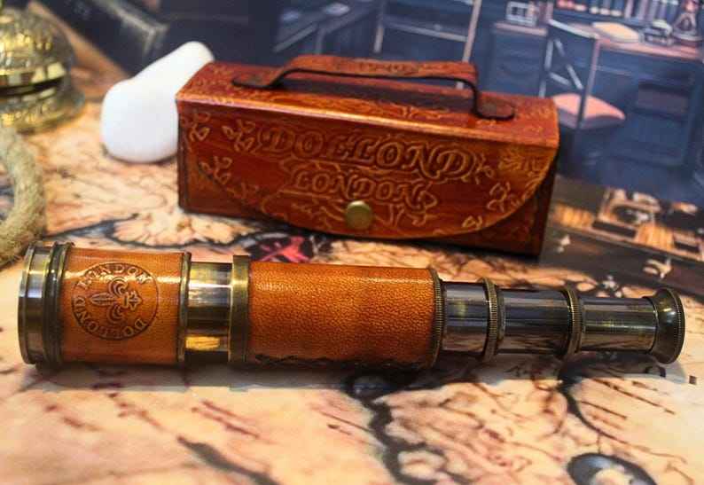 กล้องส่องทางไกลทองเหลืองวินเทจแบบกล้องส่องทางไกลกล้องส่องทางไกลกล้องส่องทางไกลแบบตาเดียวพร้อมเคสหนังของขวัญสำหรับสามีพ่อลูกชายสำเร็จการศึกษาหรือวันพ่อ