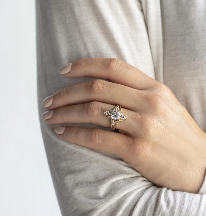 แหวนแต่งงาน/หมั้นเพชรโมอิสซาไนต์ทรงบริลเลียนต์วินเทจเงินแท้สำหรับผู้หญิง ดีไซน์โดดเด่นสำหรับงานปาร์ตี้และวันครบรอบ
