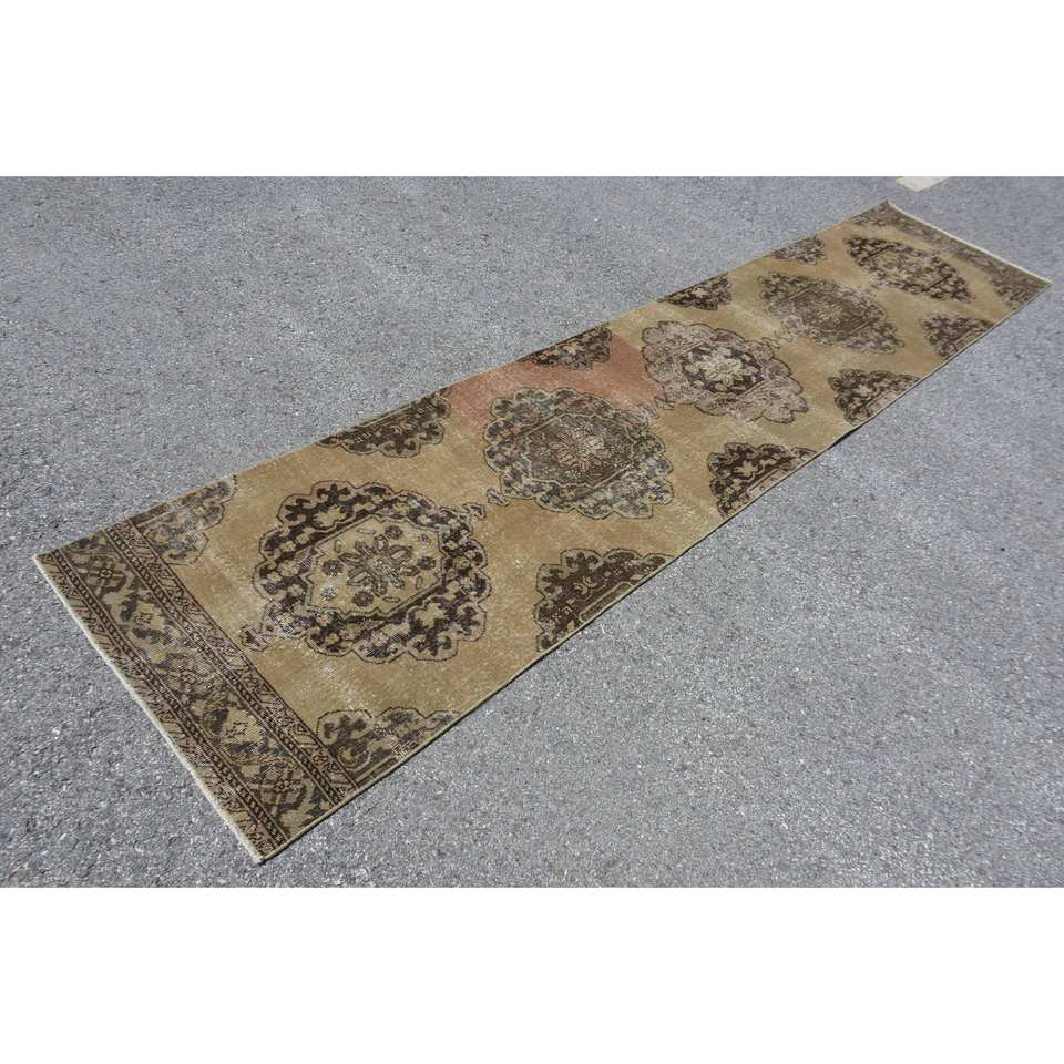 พรมขนสัตว์ตุรกีสีเบจสีน้ำตาลวินเทจ28x126ฟุตพรมลาเท็กซ์สำหรับตกแต่งบ้าน