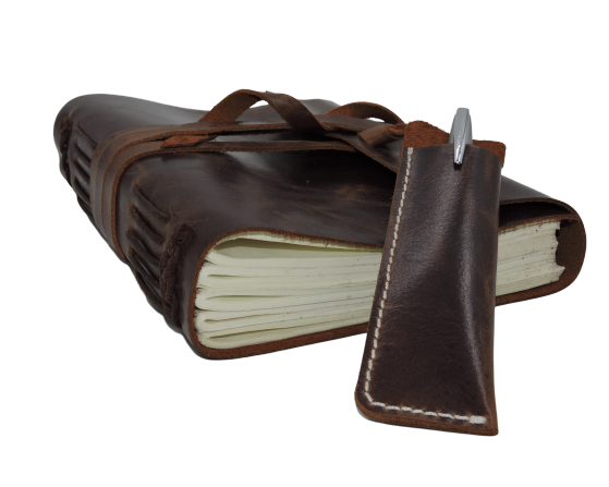 สมุดบันทึกปกหนังทำด้วยมือหนังควายสีน้ำตาลวินเทจพร้อมปกปากกาที่สวยงามนมปรับแต่งได้