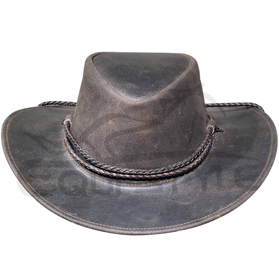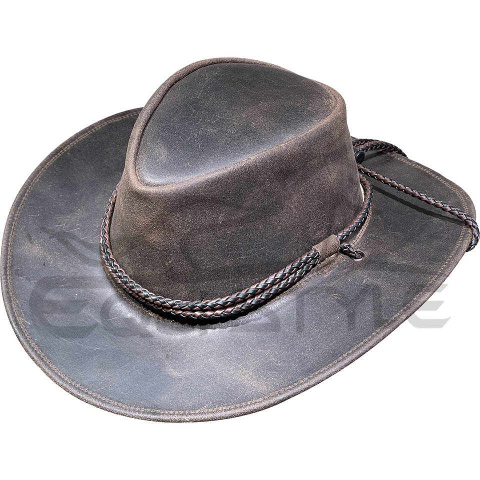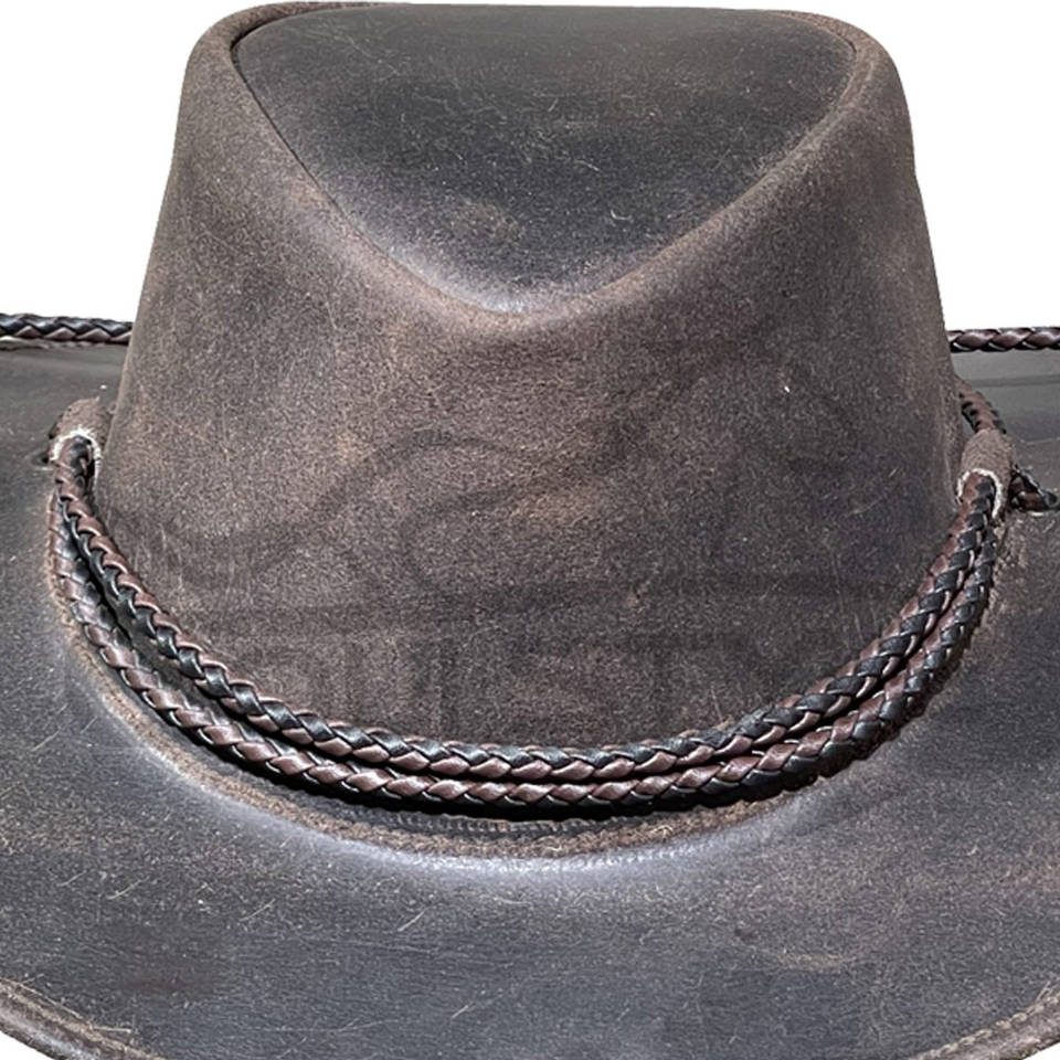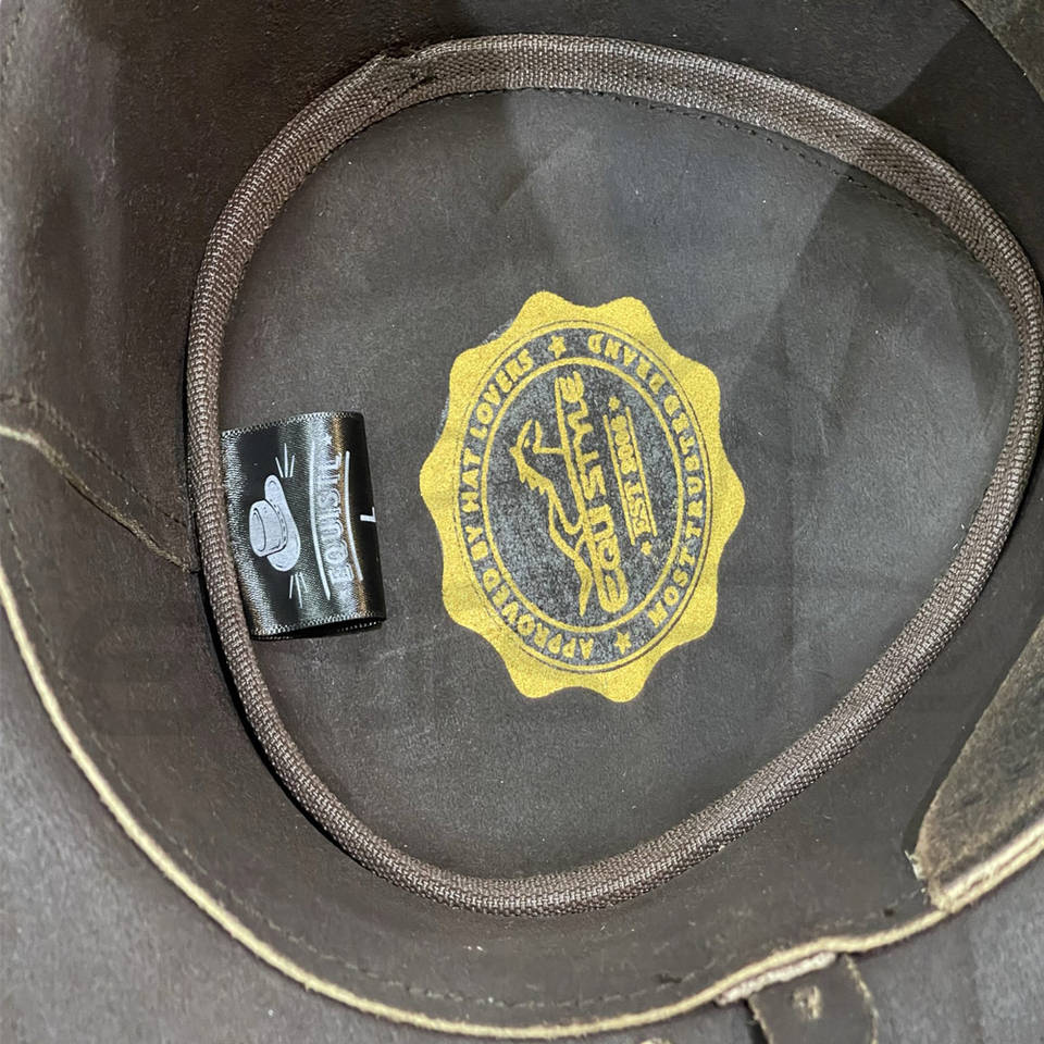 หมวกคาวบอยหนังแท้สีน้ำตาลวินเทจจากออสเตรเลีย ปีกกว้าง พร้อมสายรัดกลม ป้องกันแสงแดดสำหรับกิจกรรมกลางแจ้ง หมวกหนังทนทาน ขายส่ง
