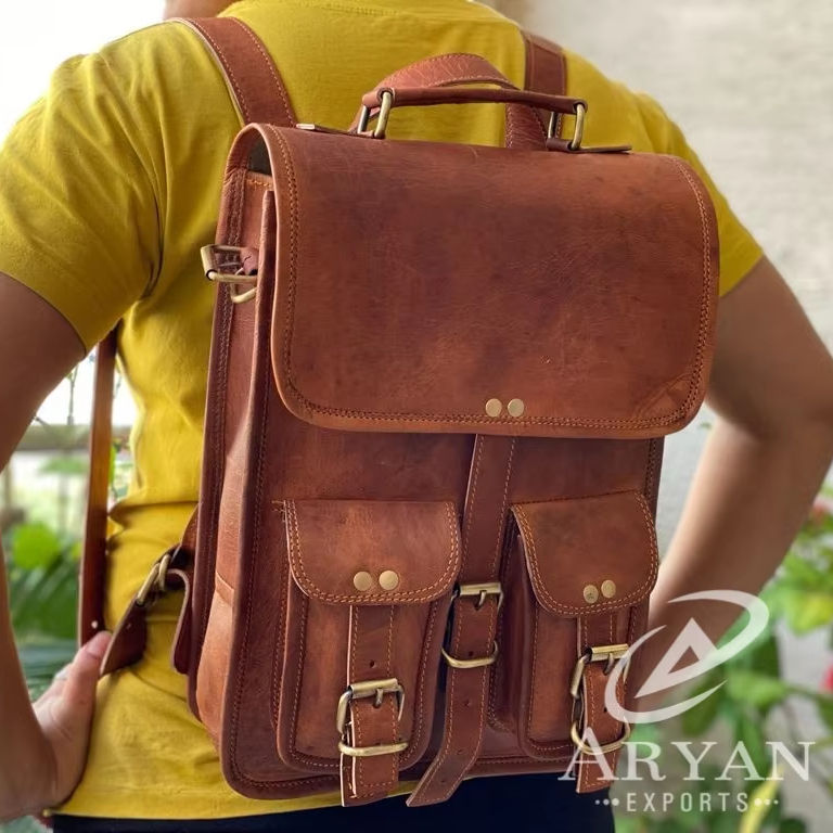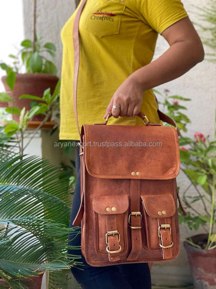 กระเป๋าเป้หนังสีน้ำตาลวินเทจแพะหนัง Messenger กระเป๋าสองในหนึ่ง10*13นิ้วกระเป๋า