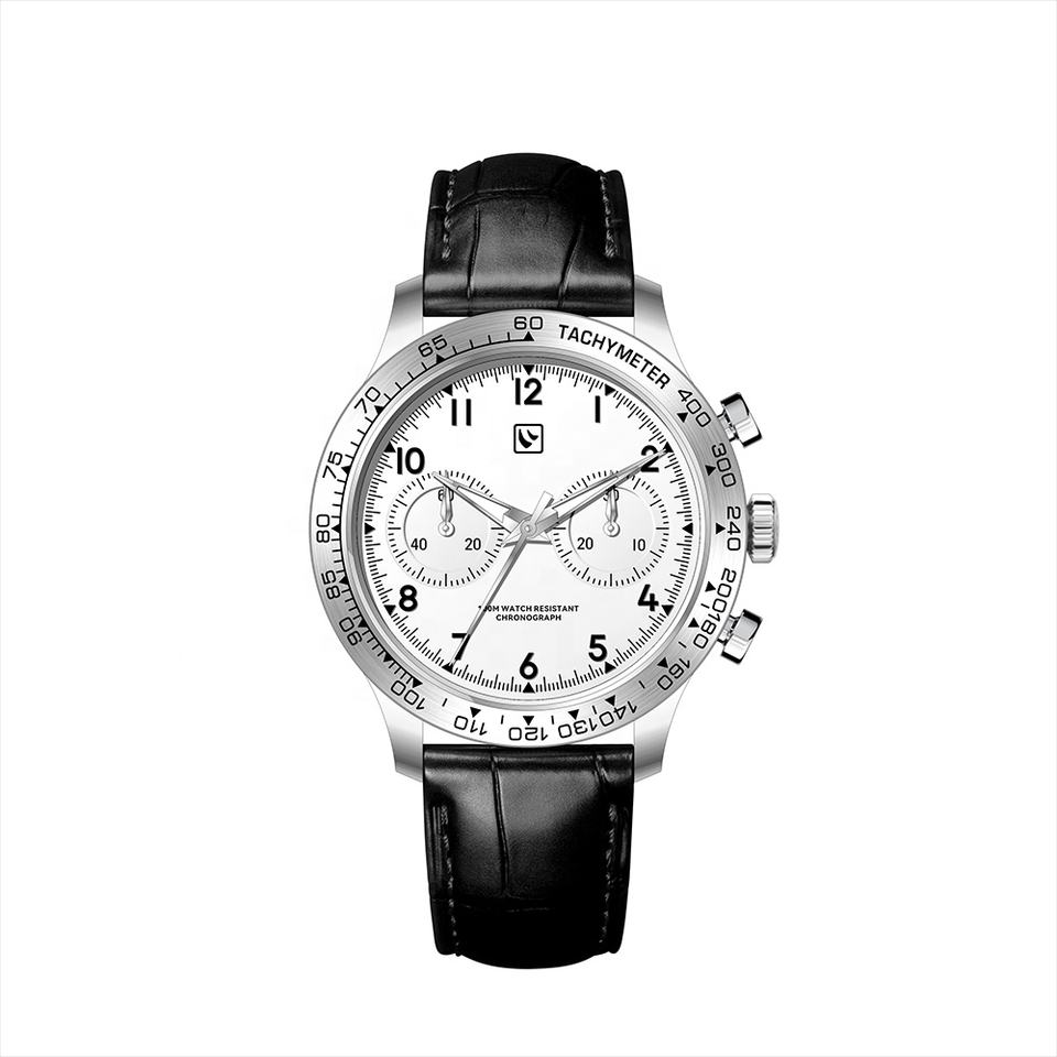 ขอบตัวเรือนสแตนเลสสตีลขัดเงาแบบวินเทจ กระจกแซฟไฟร์เคลือบ AR นาฬิกาจับเวลาอเนกประสงค์ระบบกลไก ST1901