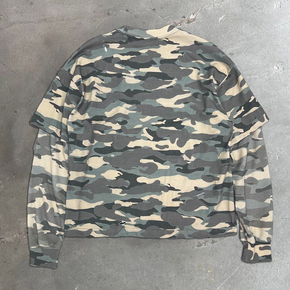 เสื้อยืดโอเวอร์ไซส์ลายพรางวินเทจ คอกลม พิมพ์ลายดีไซเนอร์ คุณภาพสูง ผ้าหนา ซ้อนสองชั้น แขนยาว