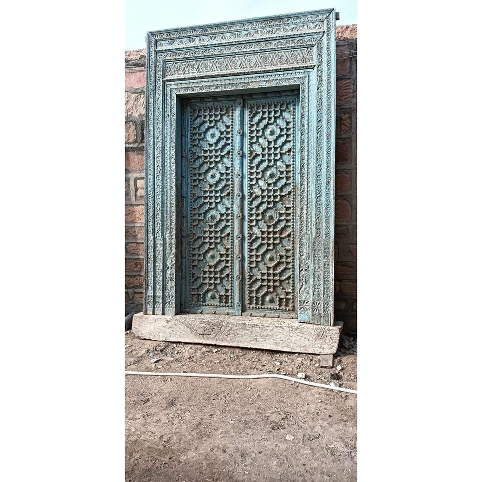 ประตูไม้แกะสลักสไตล์วินเทจงานฝีมือโลหะสถาปัตยกรรมโบราณสำหรับตกแต่งบ้านหรือปรับปรุงสตูดิโอ