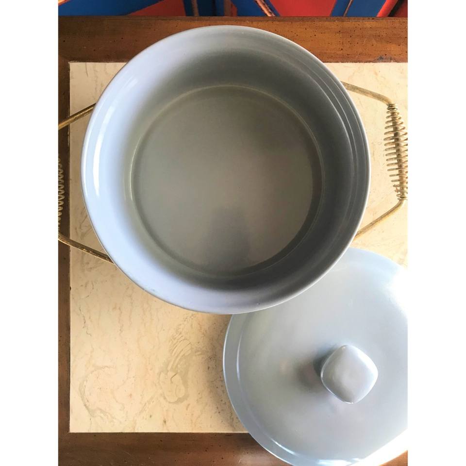 หม้อปรุงอาหารเซรามิกแบบวินเทจพร้อมที่จับโลหะหรูหราภาชนะรับประทานอาหารสไตล์วินเทจสีม่วงอบอุ่นอาหาร