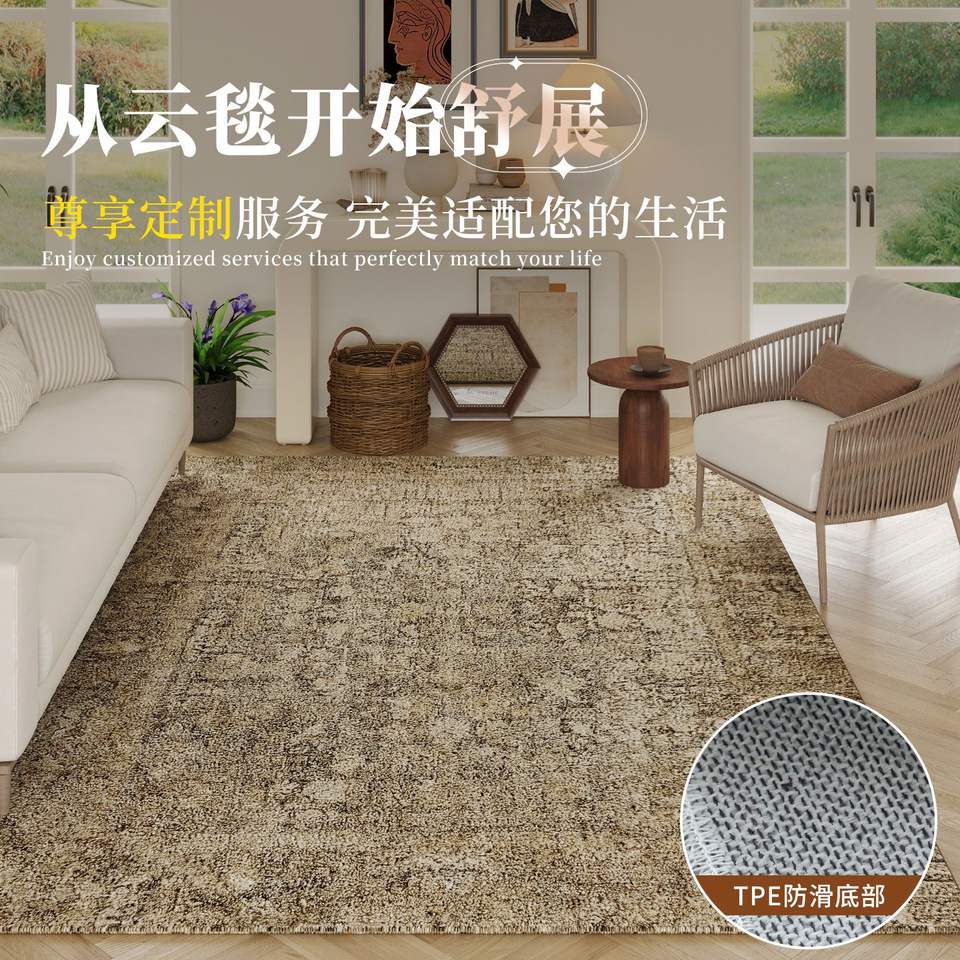 พรมวินเทจชิคทรงสี่เหลี่ยมผืนผ้าสีน้ำตาล ทอจากผ้าแคชเมียร์อย่างดี สำหรับปูพื้นห้องนั่งเล่น
