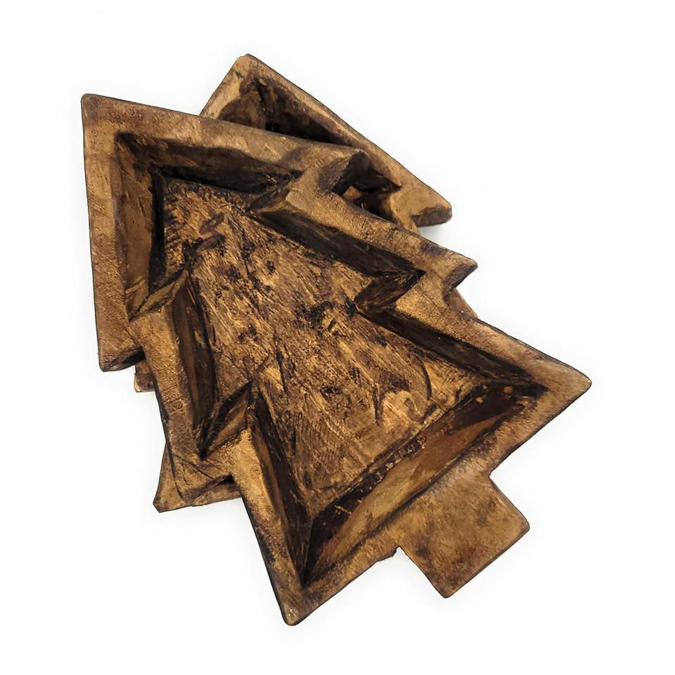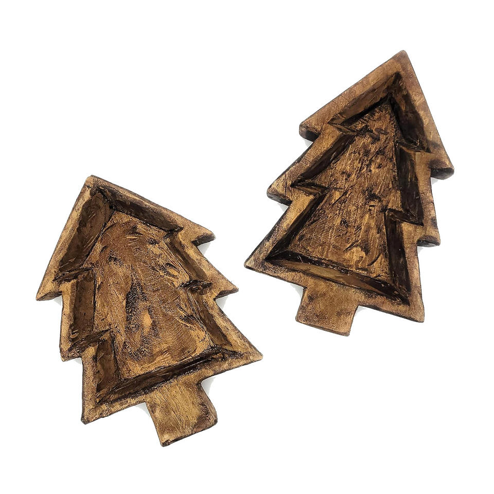 วินเทจต้นคริสต์มาสชามแป้งสําหรับตกแต่งชามแป้งไม้สําหรับเทียนตกแต่งบ้านโต๊ะชามแป้งสําหรับเหรียญคอลเลกชัน