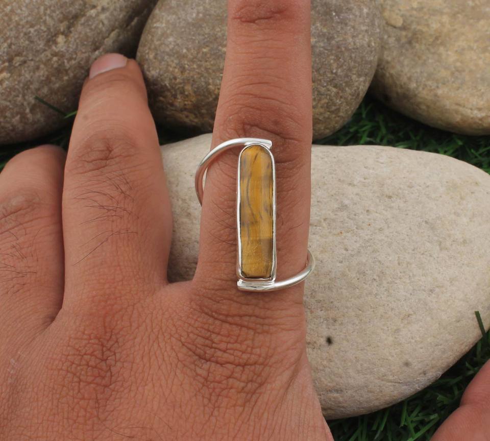แหวนเงินแท้ทรงหนาประดับหินไทเกอร์อายแบบวินเทจสำหรับผู้หญิง แหวนหินธรรมชาติคลาสสิกสำหรับงานแต่งงานและงานปาร์ตี้