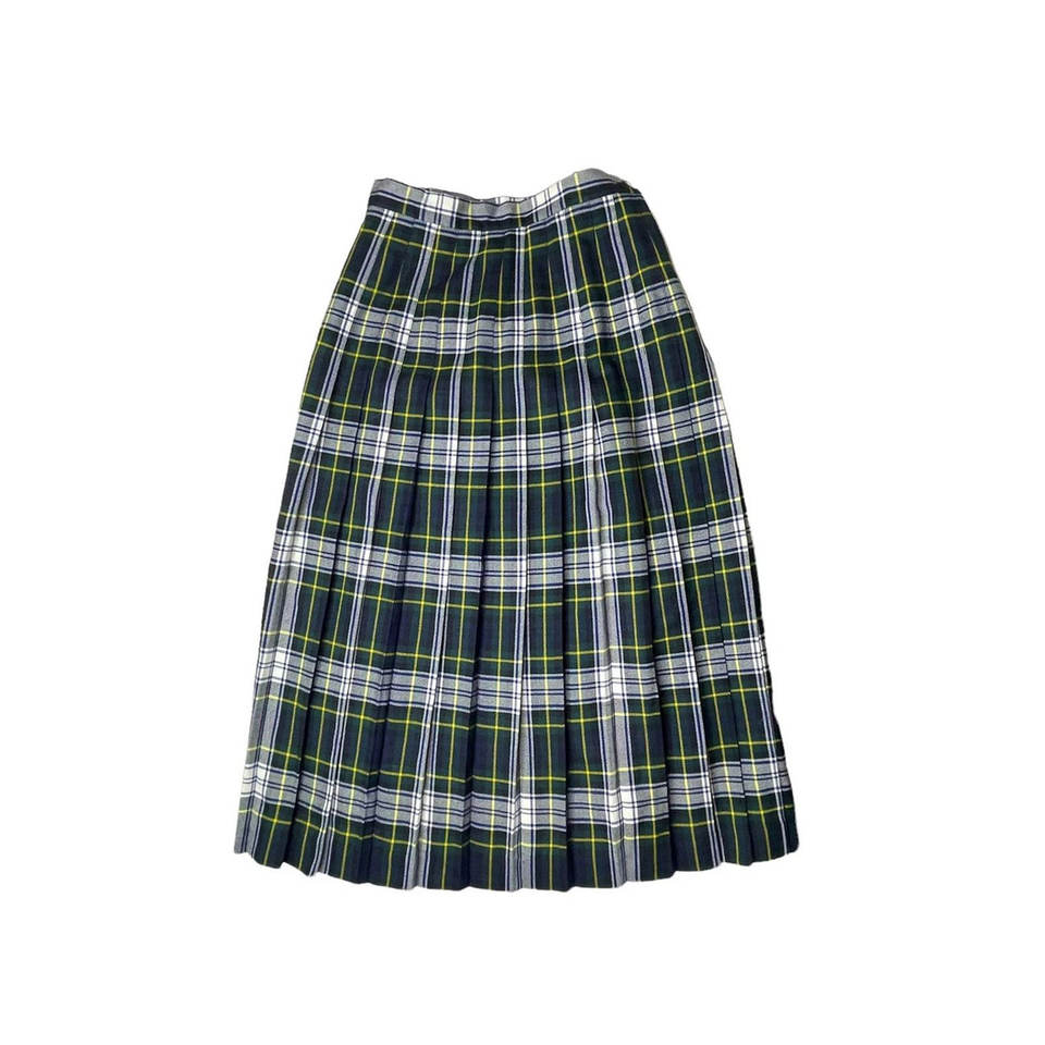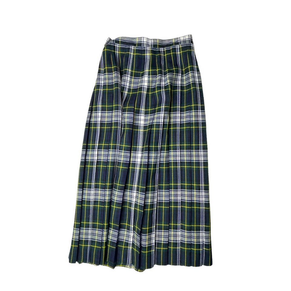เดรสลายสก็อตสีน้ำเงินเขียวสไตล์วินเทจคลาสสิก กระโปรงกิลท์ผ้าวูลจีบลายกอร์ดอนทาร์ทันสำหรับผู้หญิง
