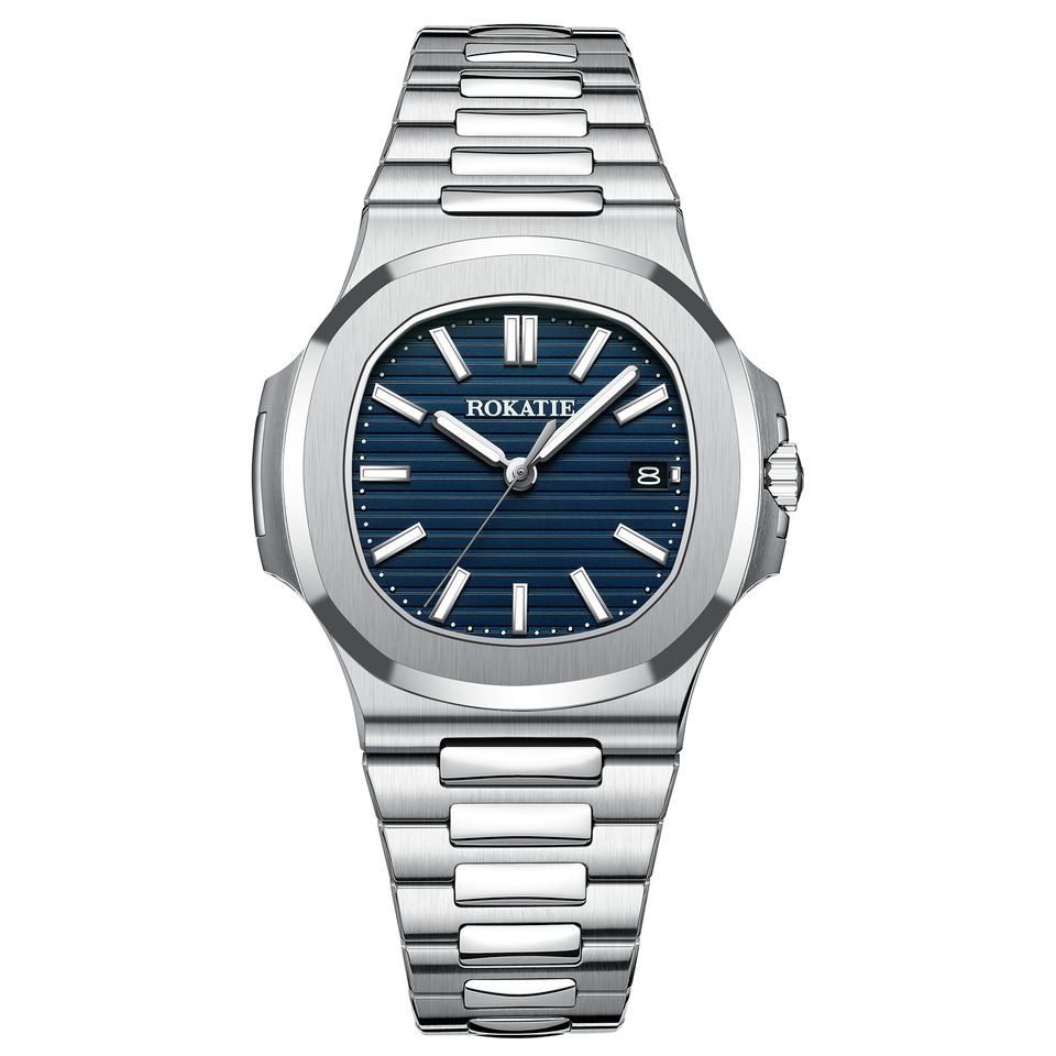 นาฬิกาข้อมือผู้ชายสไตล์วินเทจคลาสสิก ตัวเรือนสแตนเลสสตีล ระบบออโตเมติกจักรกล กันน้ำ 5BAR เหมาะสำหรับเล่นกีฬาและธุรกิจ พร้อมเข็มเรืองแสง