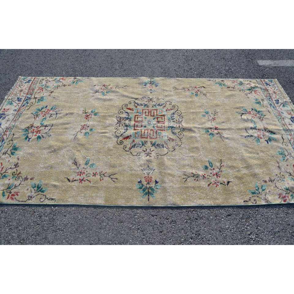 พรมขนสัตว์ทรงสี่เหลี่ยมสไตล์วินเทจสีเหลืองสีน้ำเงิน9.3ft 4.8 X สำหรับวัยรุ่นในห้องนั่งเล่น