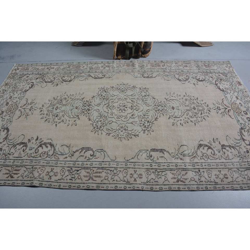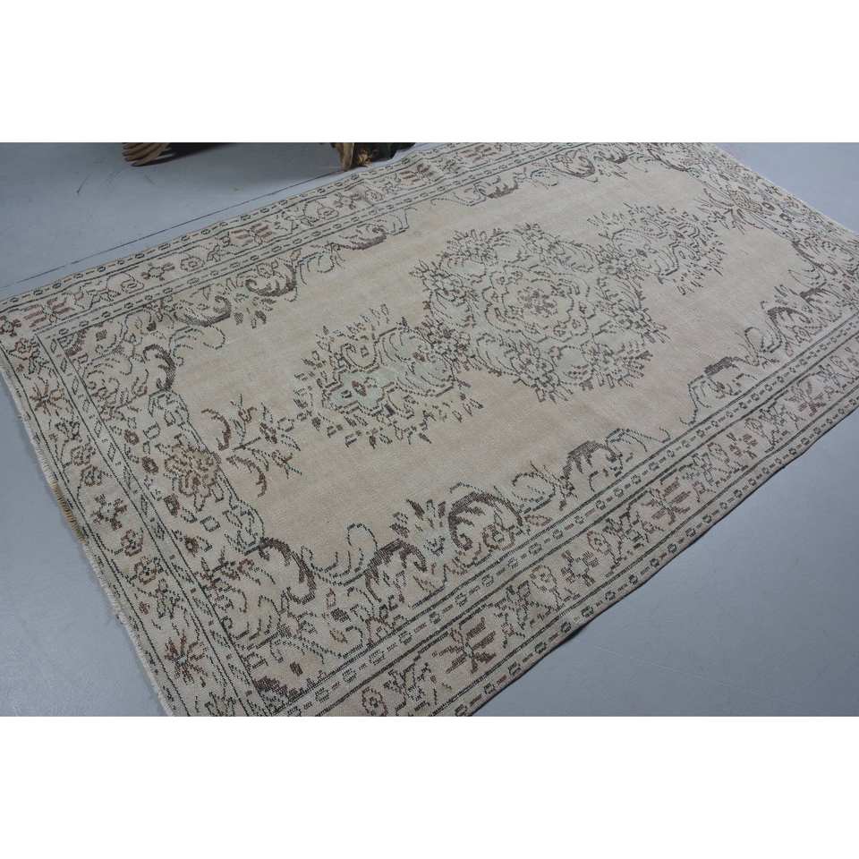 พรมตุรกีวินเทจคลาสสิก5.3 x 8.6ft ผ้าขนแกะทรงสี่เหลี่ยมผืนผ้าดีไซน์เย็บปะต่อสีน้ำตาลเบจ