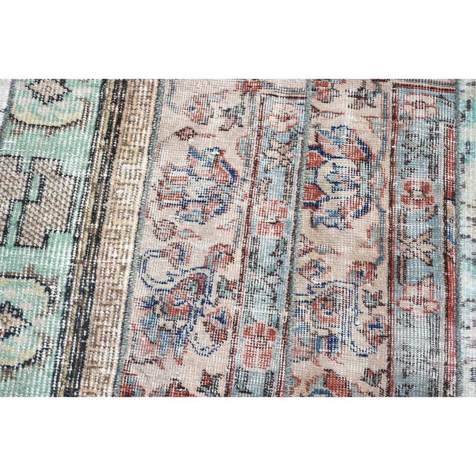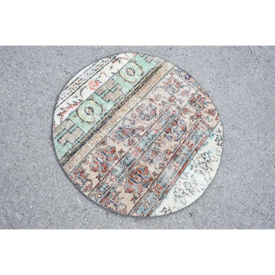 พรมตุรกีวินเทจ3.1ft เบจสีน้ำตาล3.1 x ขนสัตว์แฮนด์เมดพร้อมแผ่นรองยางลายเย็บปะสี่เหลี่ยมผืนผ้าสำหรับข้างเตียง
