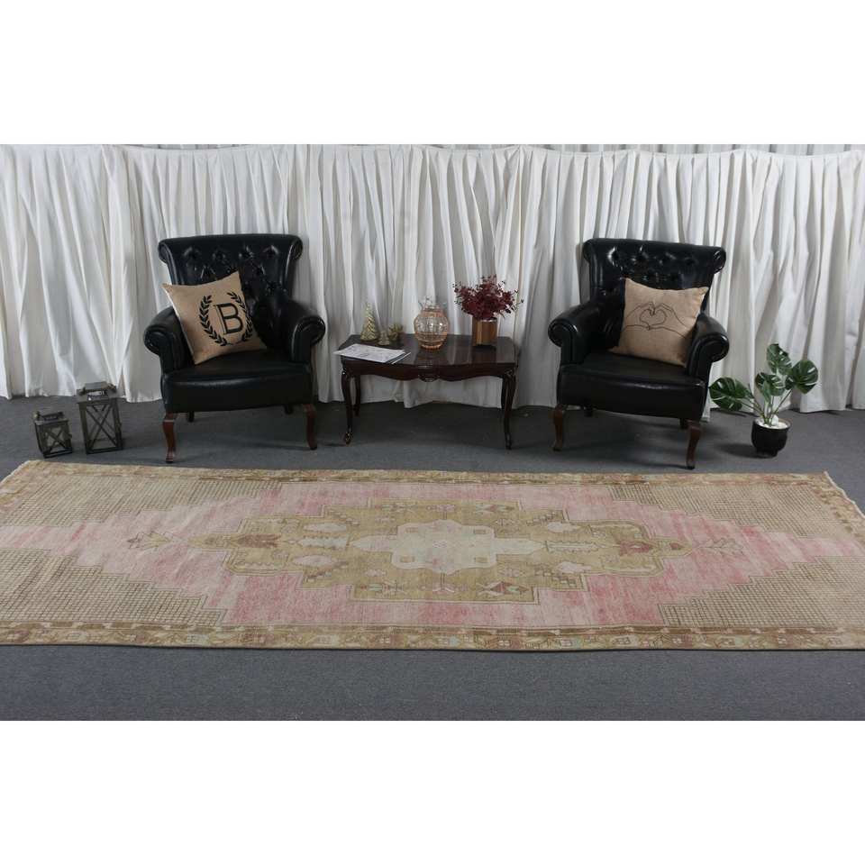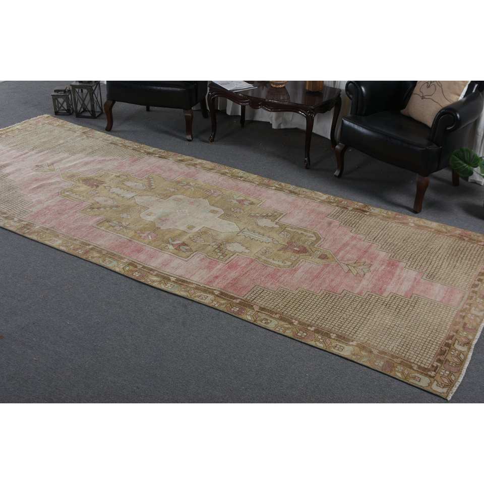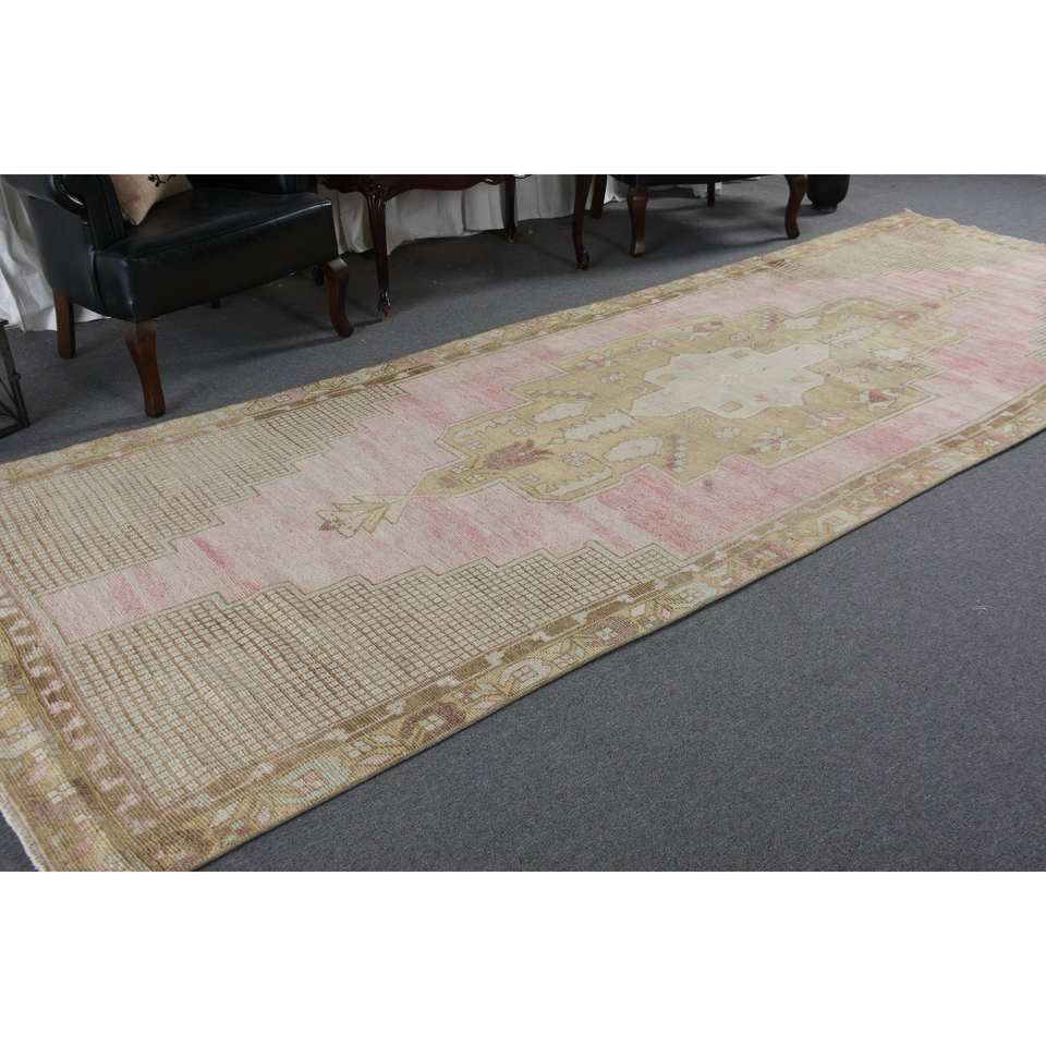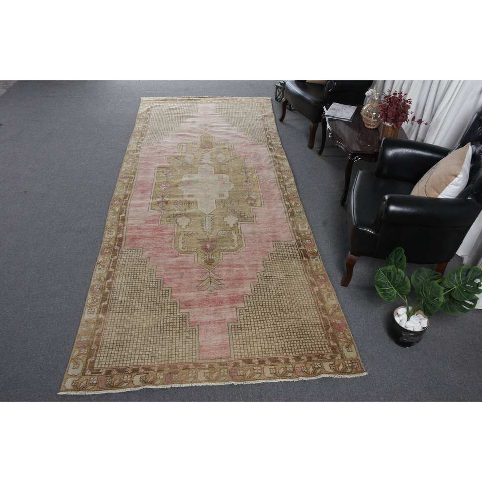 พรมตุรกีวินเทจคลาสสิก12.8ft เบจ-ชมพู4.7 x พื้นที่ขนาดใหญ่งานเย็บปะทำจากขนสัตว์ยางสี่เหลี่ยมนามธรรมสำหรับพรมห้องโถงห้อง