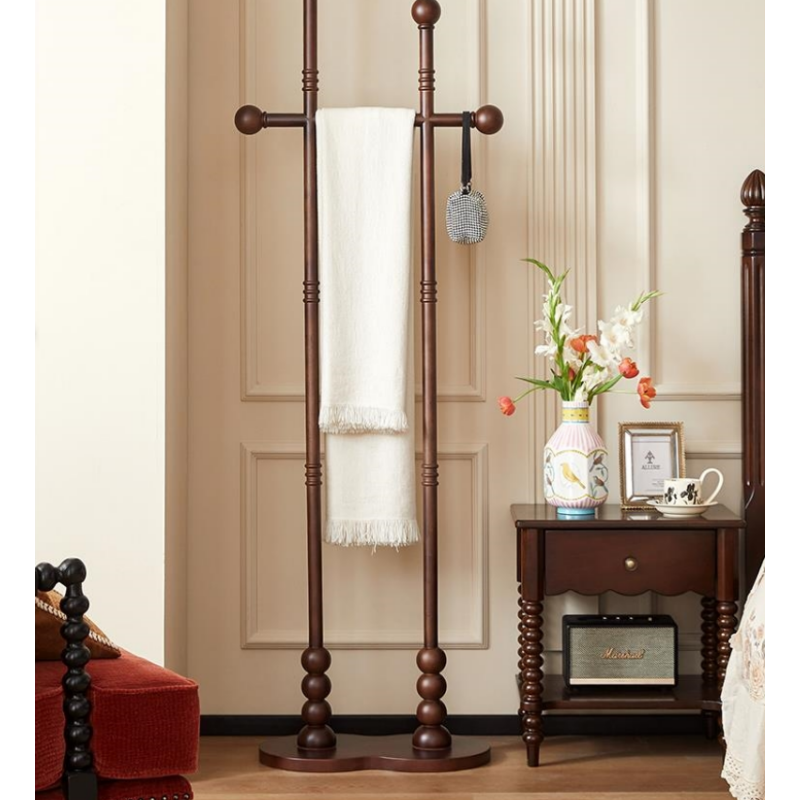 ราวแขวนเสื้อโค้ทวินเทจไม้เนื้อแข็งอเนกประสงค์ ประหยัดพื้นที่ สไตล์ฝรั่งเศส เฟอร์นิเจอร์ตกแต่งบ้าน สำหรับห้องนั่งเล่น ห้องนอน โรงแรม