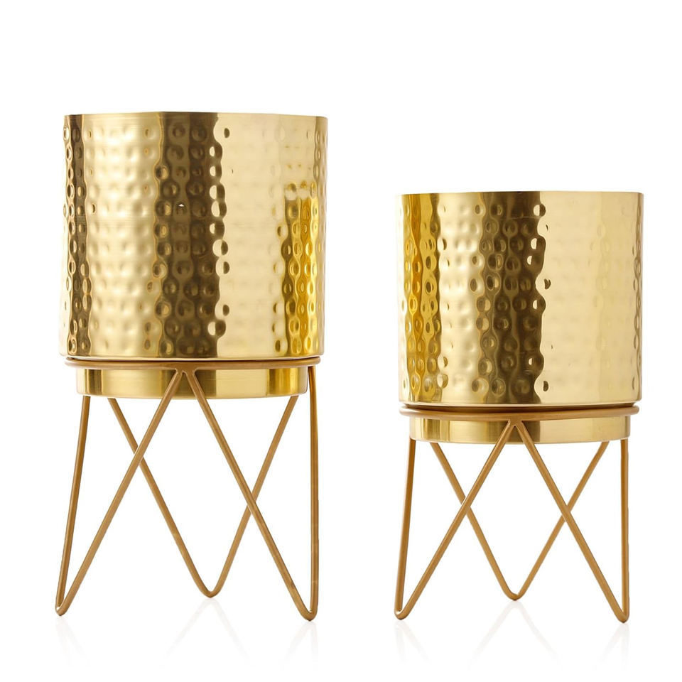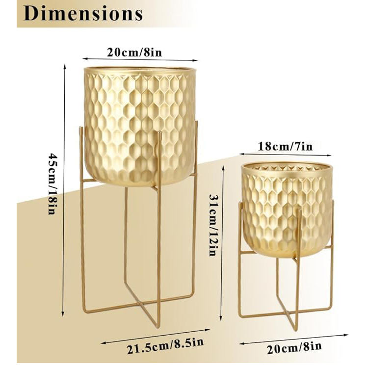 กระถางดอกไม้โลหะสไตล์วินเทจ ดีไซน์เพชร ชุบทอง พร้อมขาตั้ง สำหรับวางบนพื้น ตกแต่งบ้านและสำนักงาน