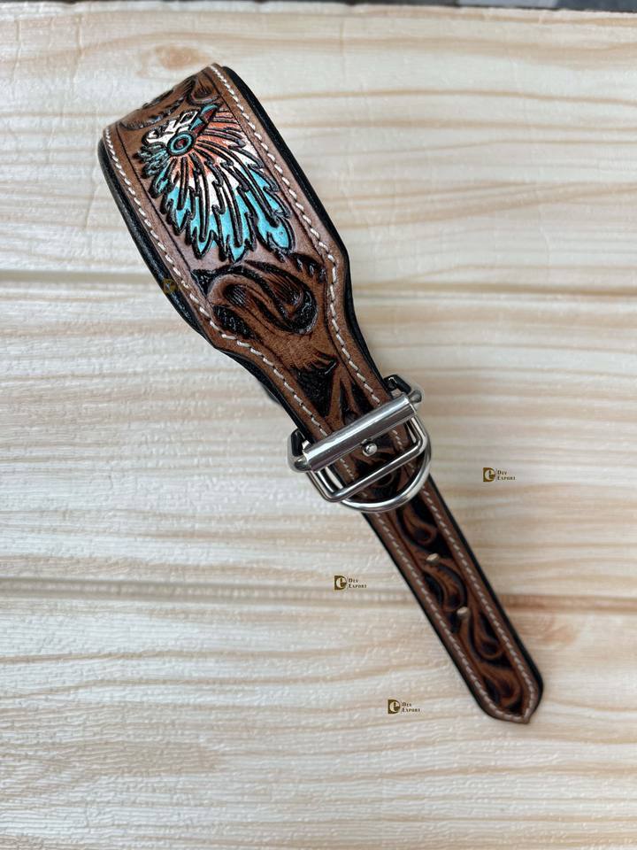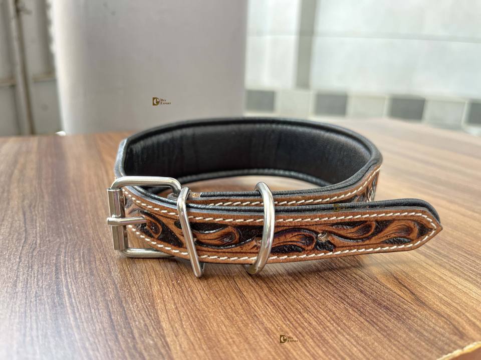 ปลอกคอสุนัขหนังแท้สไตล์ตะวันตก ตกแต่งหัวกะโหลก พร้อมหัวเข็มขัดทองแดงวินเทจ ปรับความยาวได้ กว้าง 5 ซม. สีตามสั่ง ขายส่ง