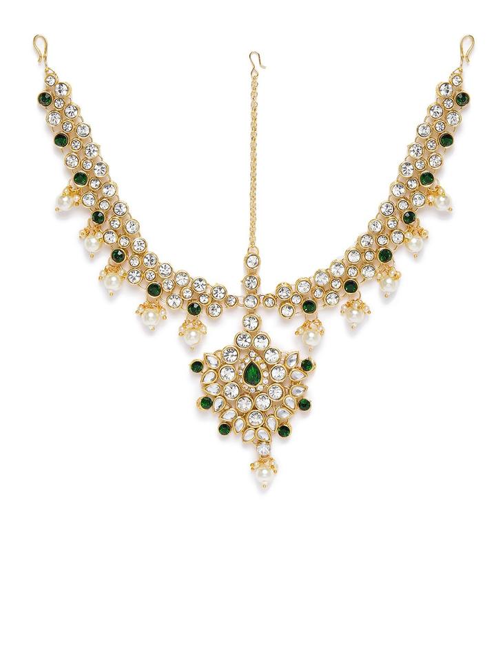 Products Name:Gold-Plated Bridal Shadow Choker Set with Earrings & Maang Tikka