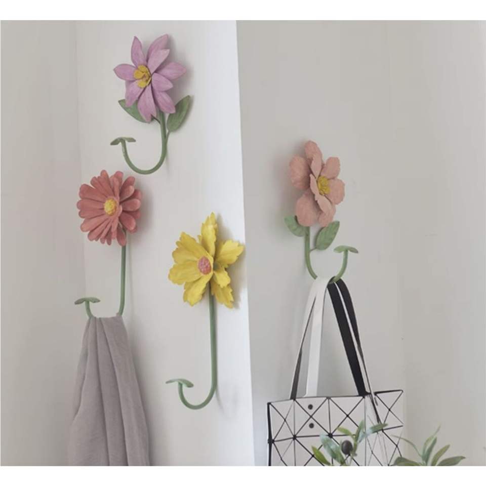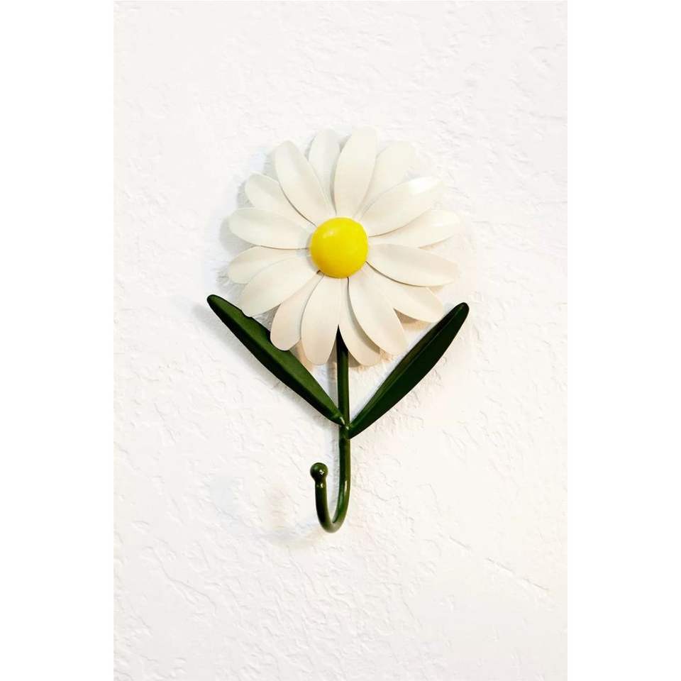 ตะขอแขวนผนังลายดอกเดซี่เหล็กสไตล์วินเทจ ค็อทเทจคอร์ ทาสีเคลือบลายดอกไม้ ตะขอแขวนตกแต่งรูปดอกทานตะวัน ที่แขวนโลหะสำหรับตกแต่งบ้านสไตล์บูติก