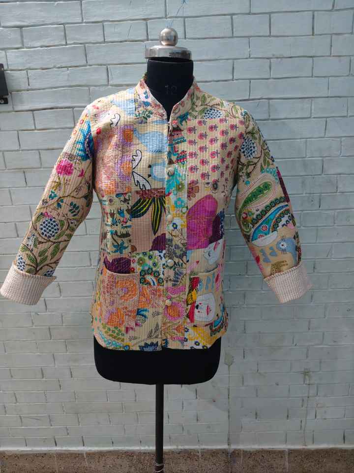 เสื้อแจ็คเก็ตผ้าฝ้ายวินเทจลายปะติดปะต่อแบบกันธา งานแฮนด์เมด พิมพ์ลายบล็อก สำหรับฤดูใบไม้ร่วง/ฤดูหนาว ระบายอากาศได้ดี เป็นมิตรกับสิ่งแวดล้อม เหมาะสำหรับเพื่อนเจ้าสาว