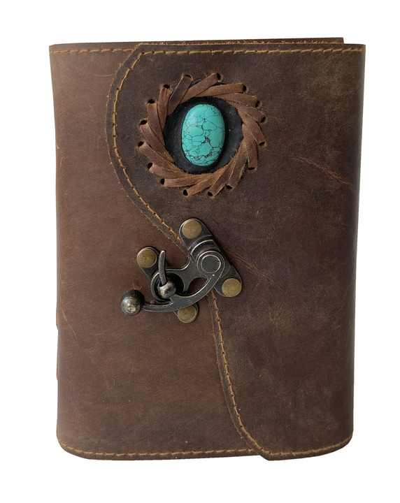 สมุดบันทึกแบบผูกด้วยหนังสีเทอร์ควอยส์งานฝีมือแนววินเทจสมุดร่างสำหรับผู้ชายและผู้หญิง