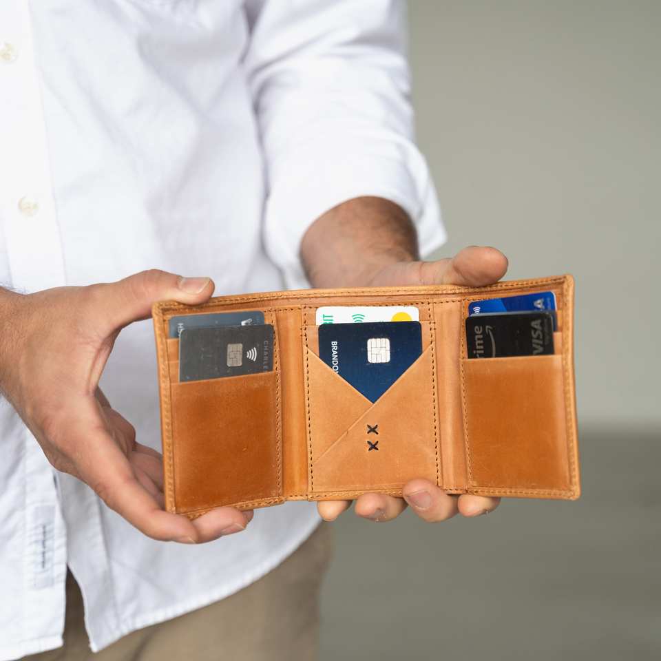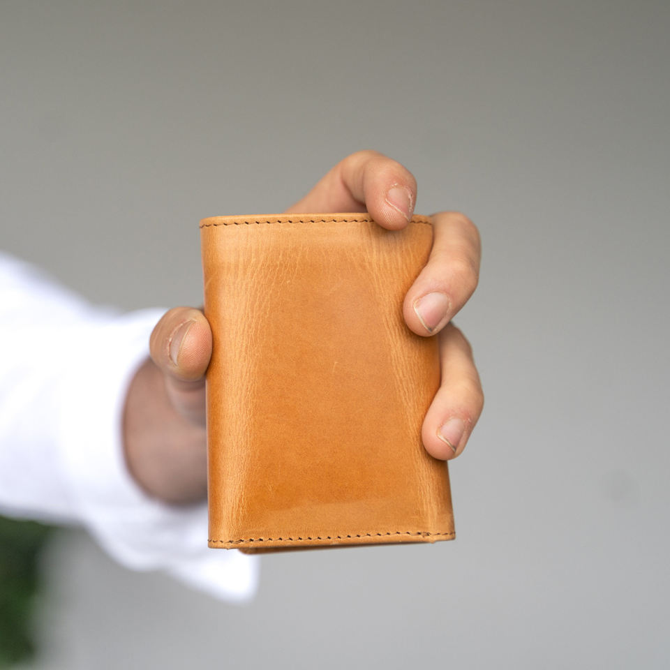 หนังม้าแท้วินเทจแบบพับสามทบเปิดสั้นกันขโมย RFID การปิดกั้นหนังวัวแท้ทำด้วยมือปรับสีได้