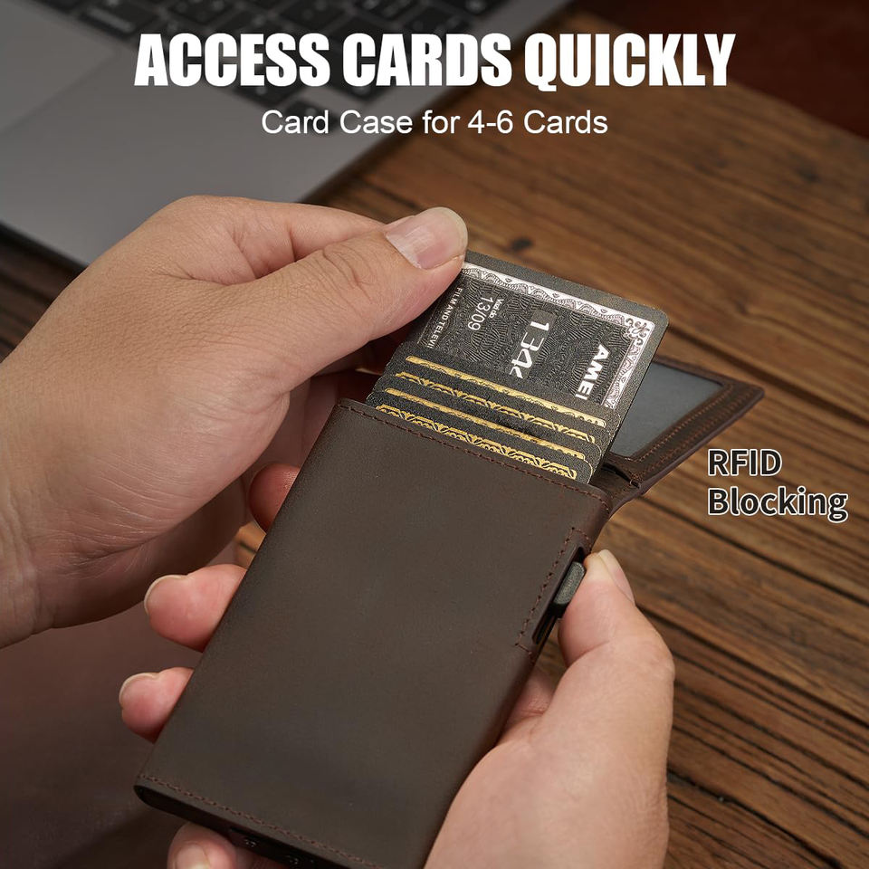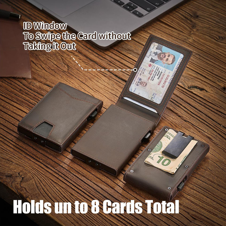 กระเป๋าใส่บัตรแบบวินเทจหนังวัวแท้ลายม้าแท้แบบวินเทจซองใส่บัตรสำหรับผู้ชายทำจากอลูมิเนียมโลหะทรงสลิมพร้อมคลิปหนีบเงิน