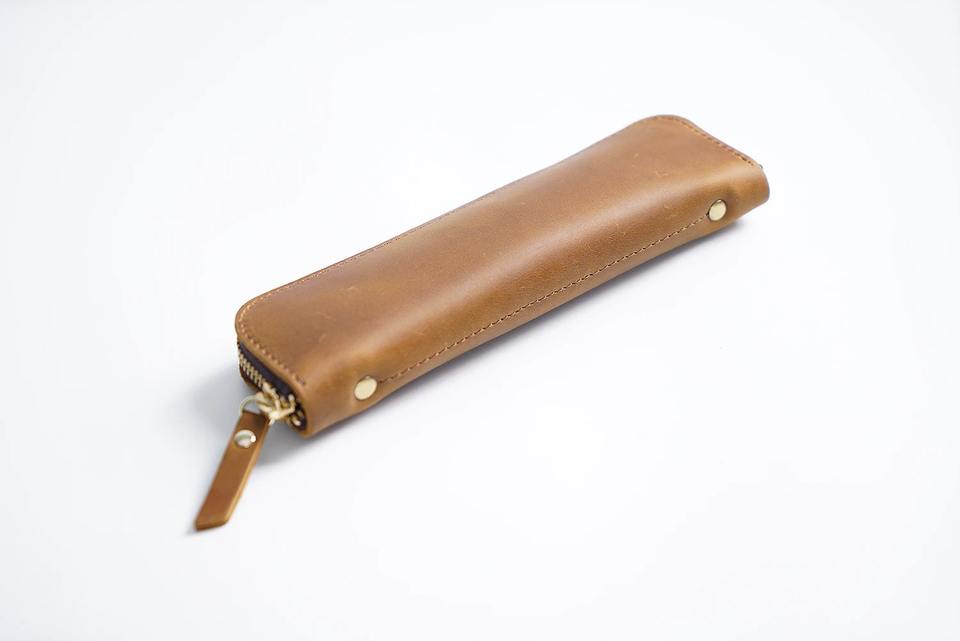 กระเป๋าใส่ปากกามีซิปทำจากหนังแท้วินเทจความจุขนาดใหญ่สามารถนำมาใช้ใหม่ได้ออกแบบมาให้เป็นของขวัญ