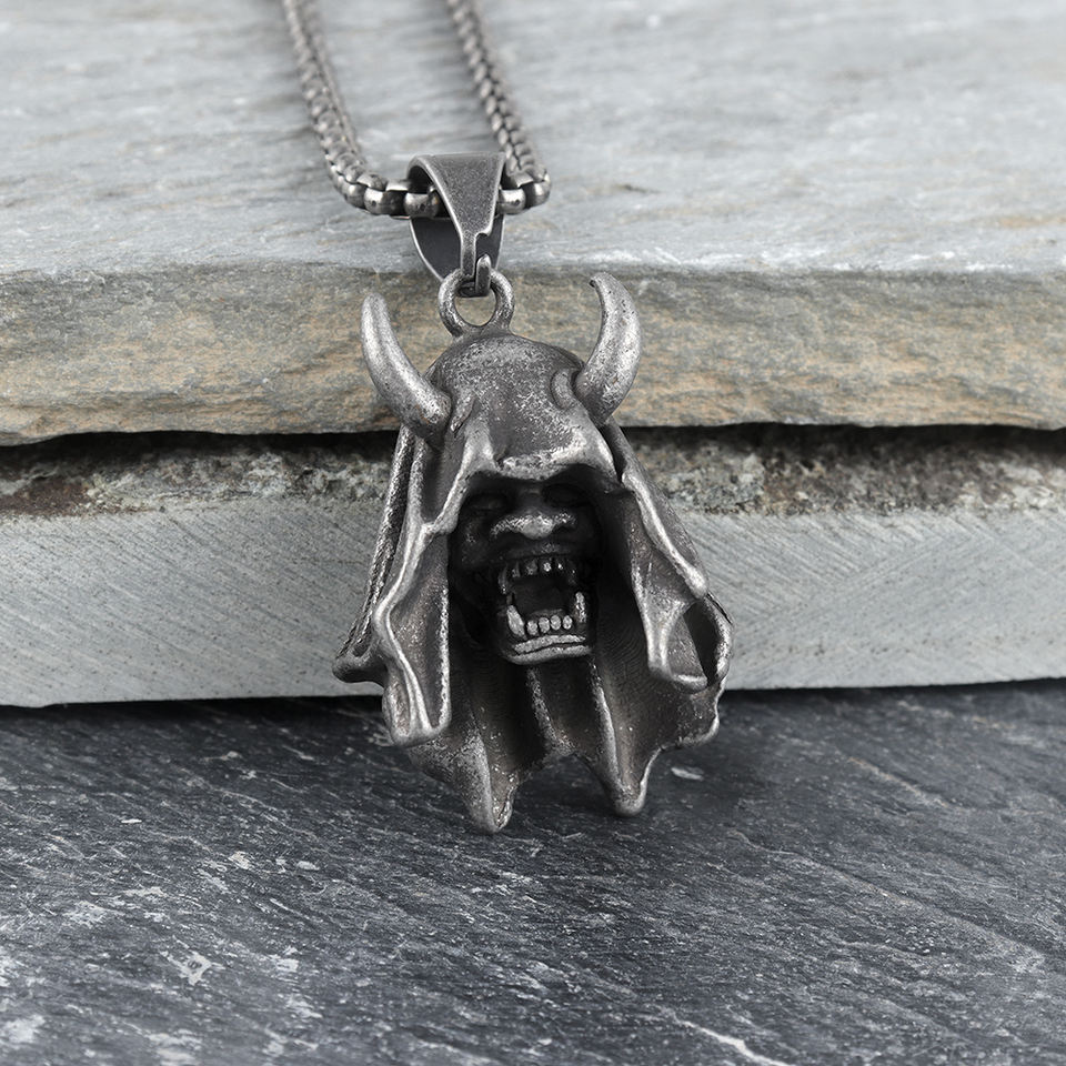 316จี้หัวกะโหลกวินเทจสร้อยคอหัวกะโหลกชั่วร้ายแบบกอธิคสแตนเลสสำหรับนักขี่จักรยานผู้ชายผู้หญิง
