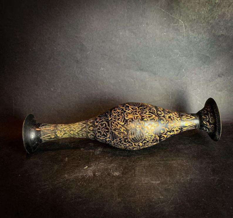 แจกันทองเหลืองตกแต่งแนววินเทจดีไซน์ดอกไม้ทำจากอะคริลิคเคลือบสีดำและสีทองสำหรับตกแต่งบ้านหรือเป็นของขวัญทำจากโลหะราคาสมเหตุสมผล