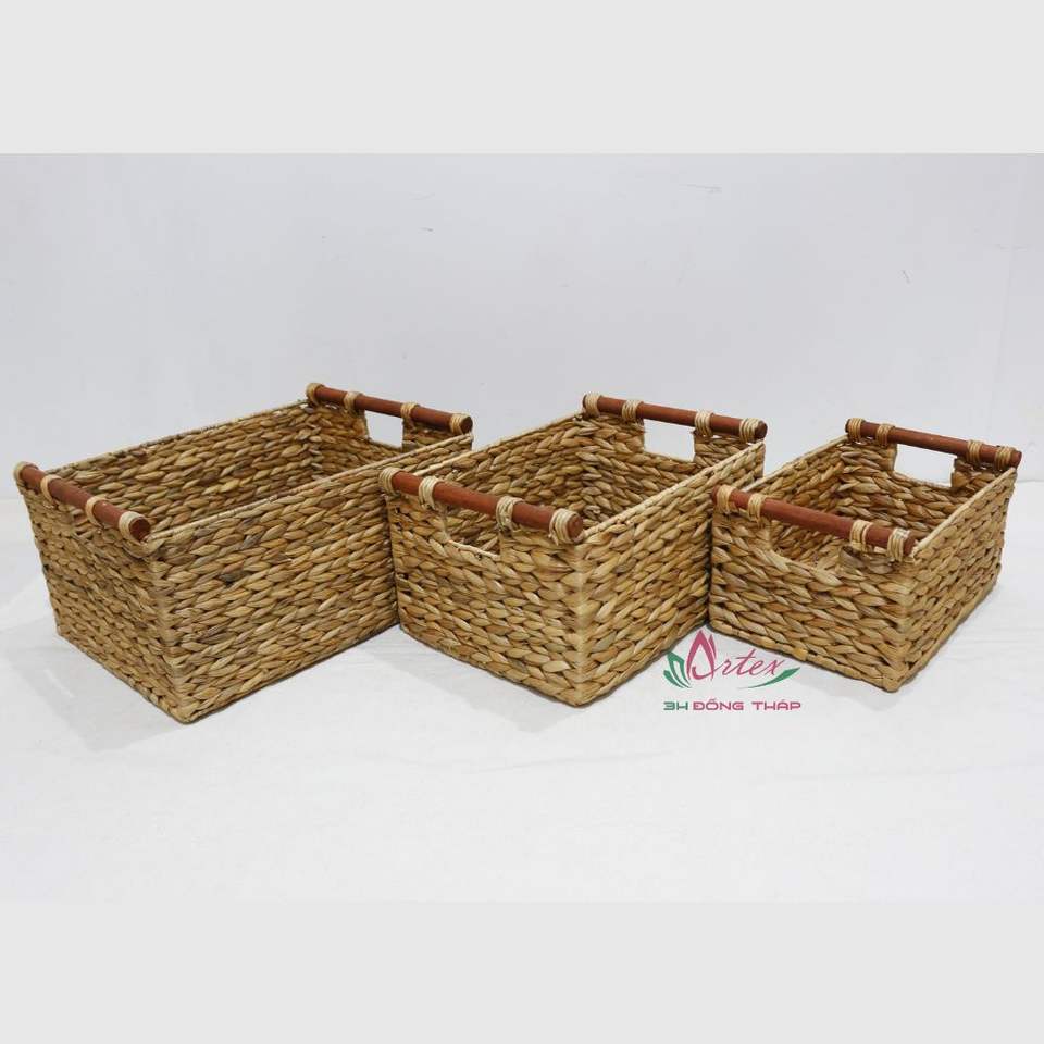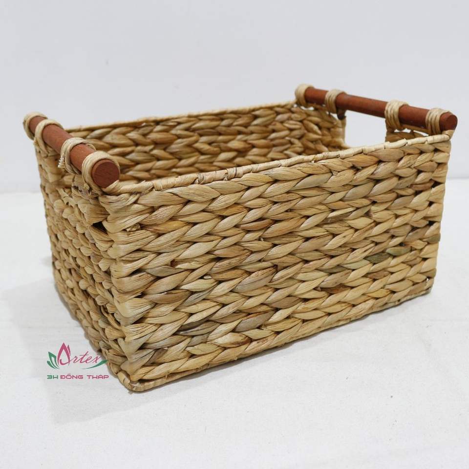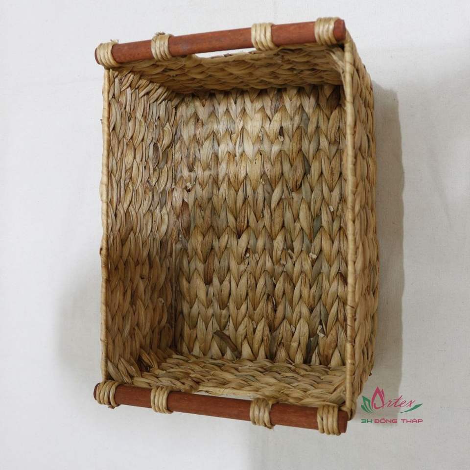 ตะกร้าเก็บน้ำธรรมชาติทรงสี่เหลี่ยมขนาดกะทัดรัดสำหรับตกแต่งสไตล์วินเทจ