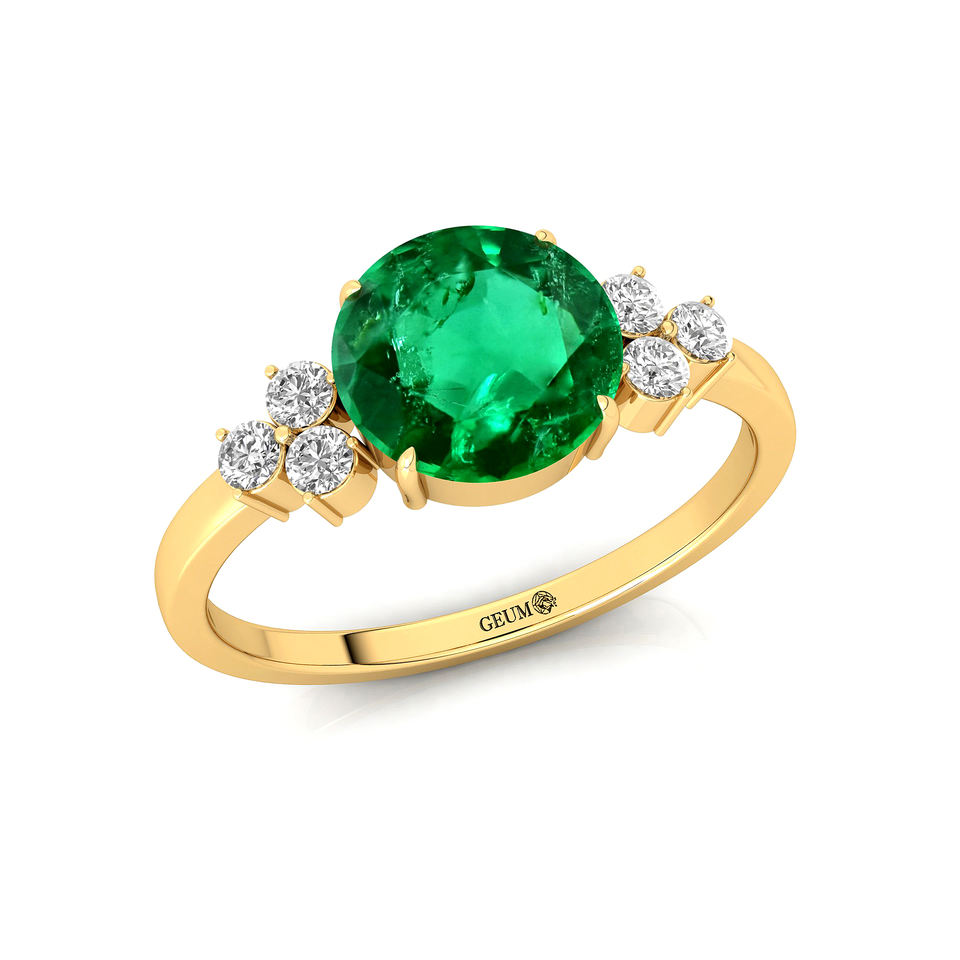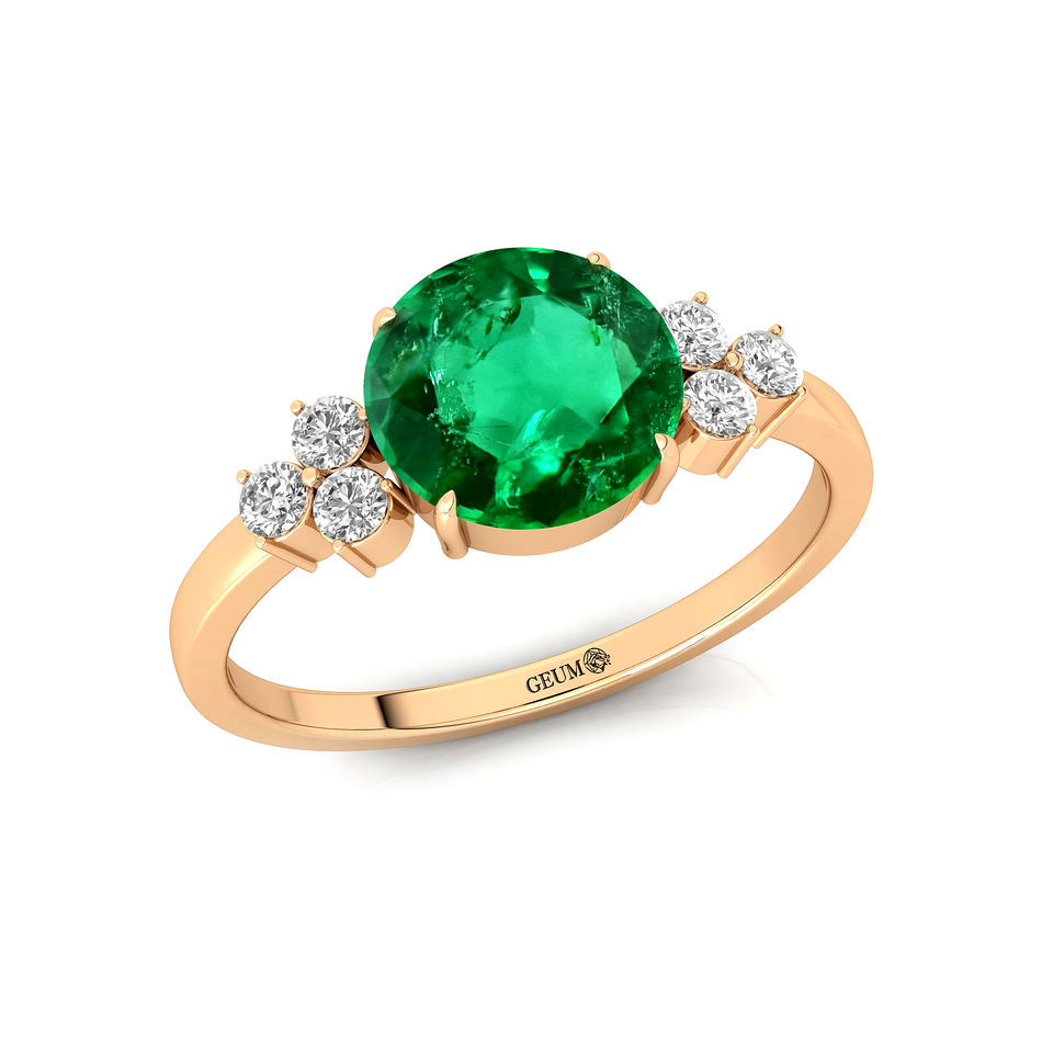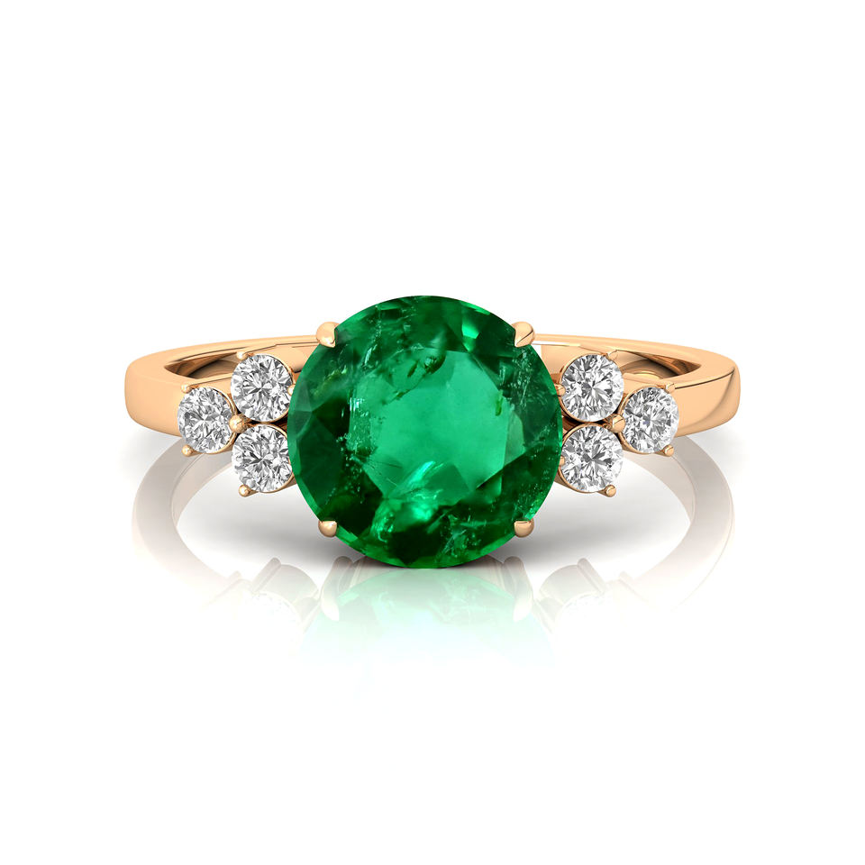 การออกแบบวินเทจ 8 มม.รอบตัดอัญมณีมรกตธรรมชาติและแหวนคลัสเตอร์เพชรในทองคําแท้ 18K เครื่องประดับพลอยที่หรูหรา OEM